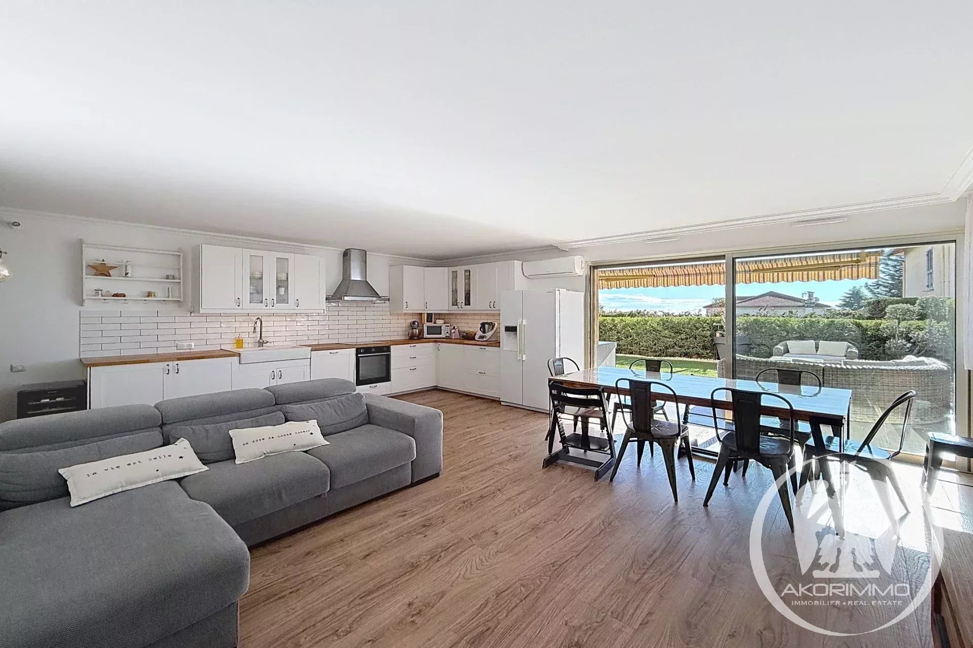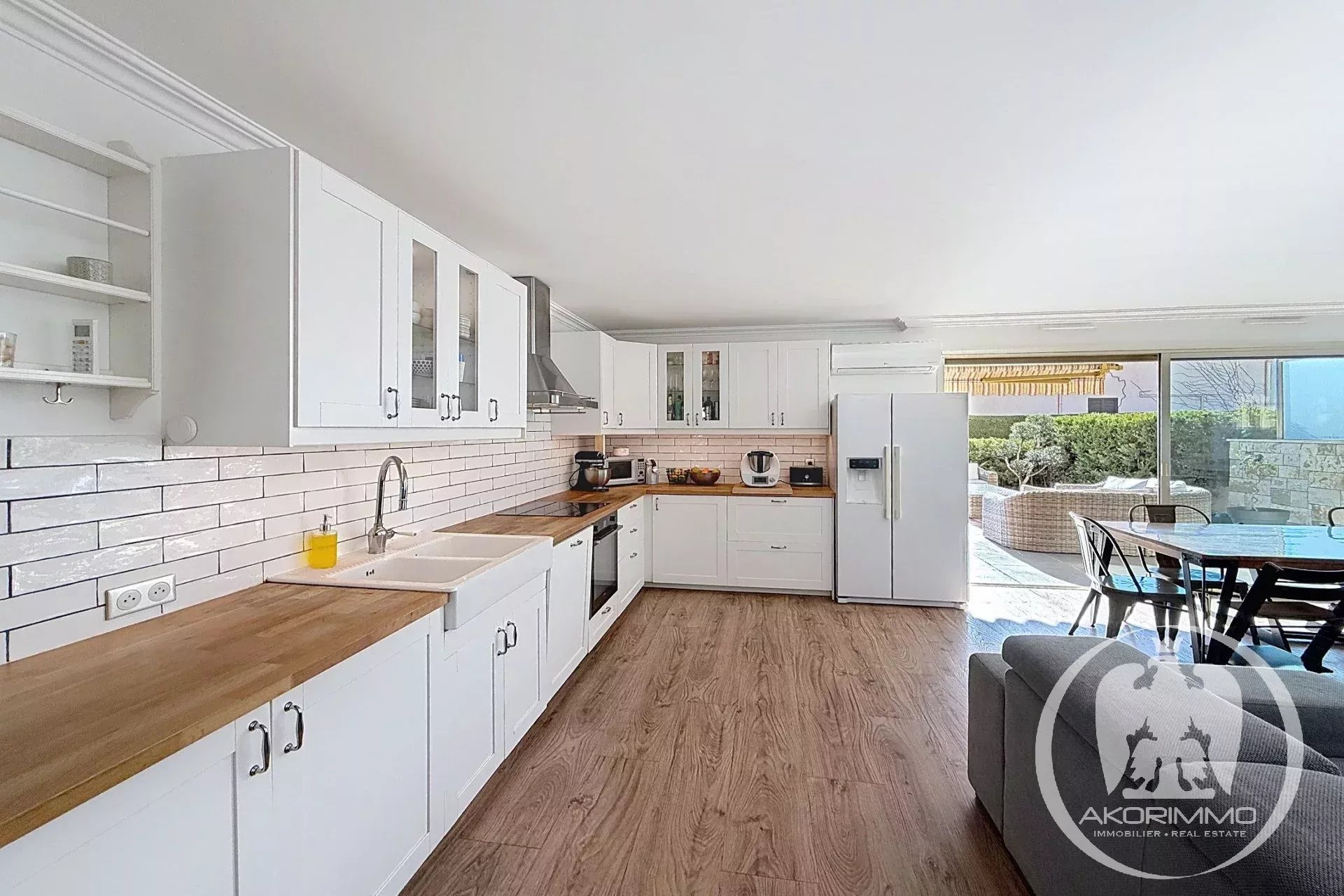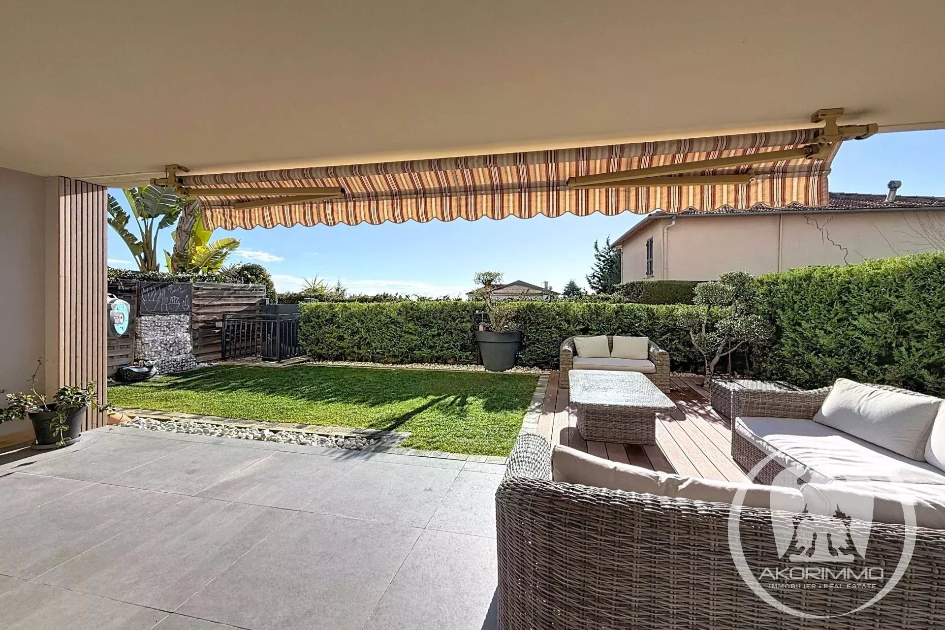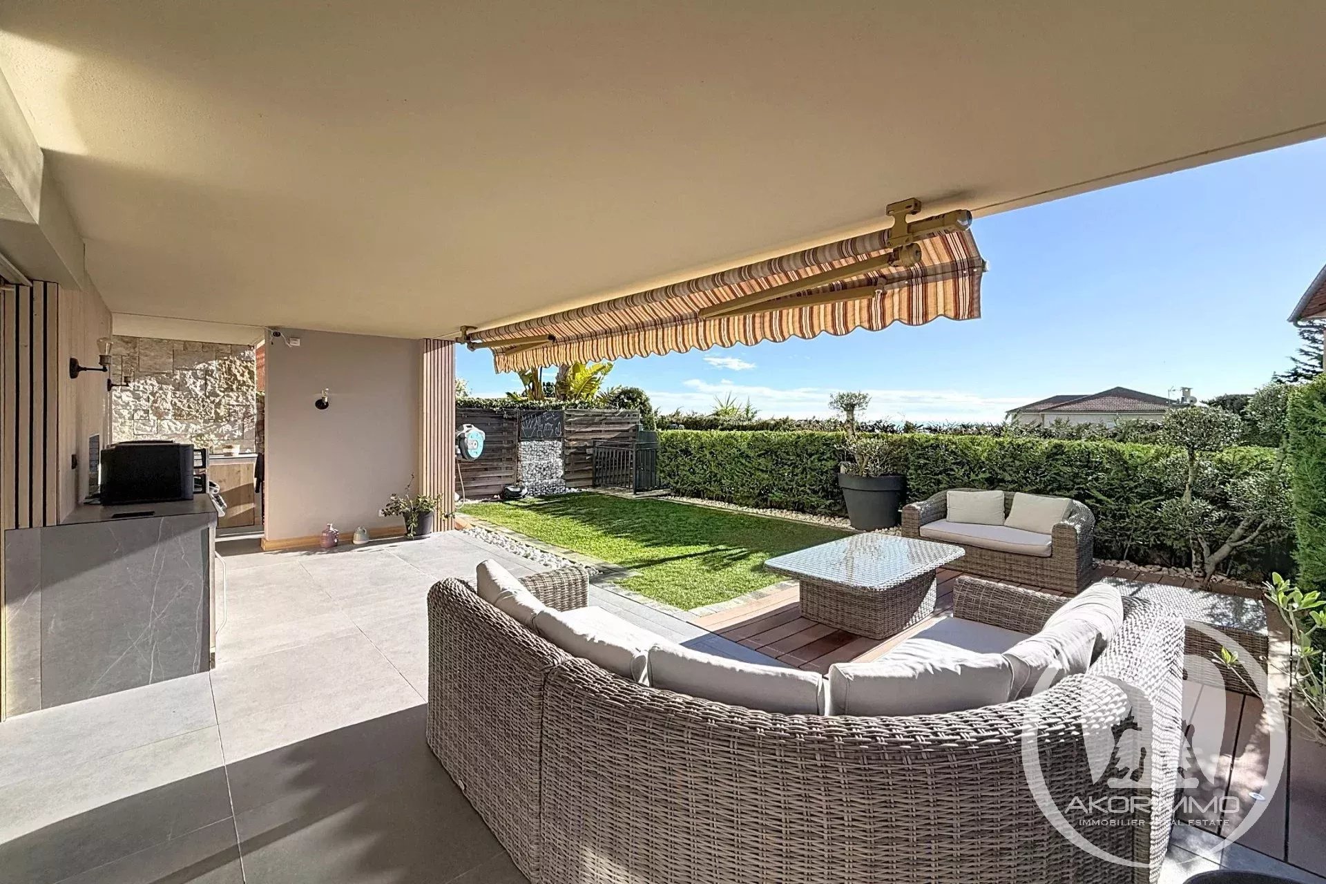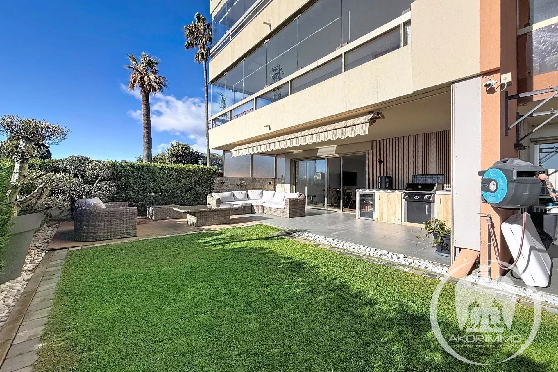Rare property. In a small, secure, high-end condominium with a pool, located on the Lanterne plateau, this splendid corner 4-room apartment of 81 m², fully tastefully renovated and air-conditioned, offers you a spacious 35 m² living room with an open-plan equipped kitchen, all opening onto a beautiful terrace and a 75 m² garden that includes a summer kitchen, three bedrooms, an Italian-style shower room, and separate toilets with a washbasin. A basement garage and a cellar complete the property. A private gate gives you direct access to the pool.