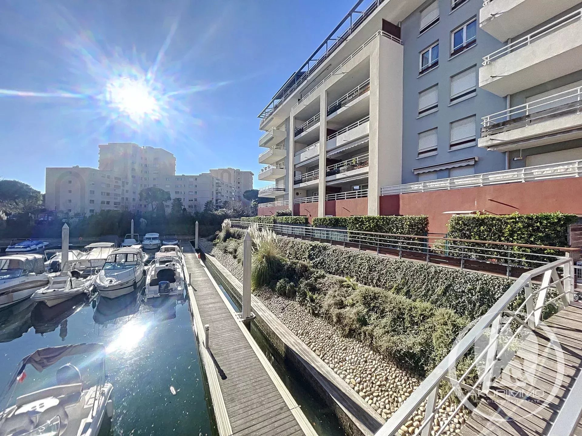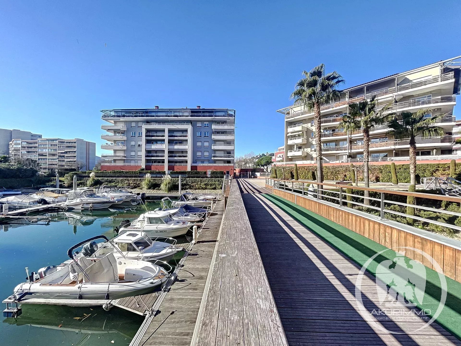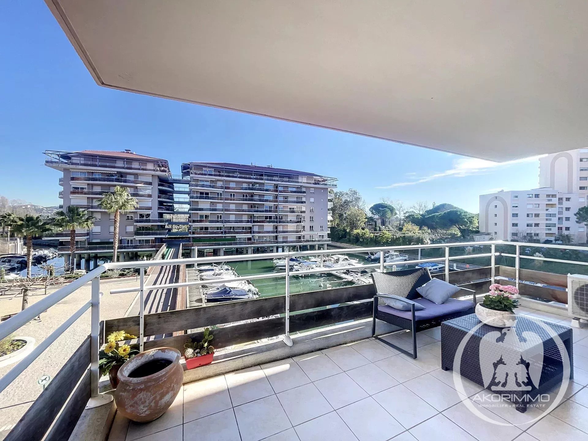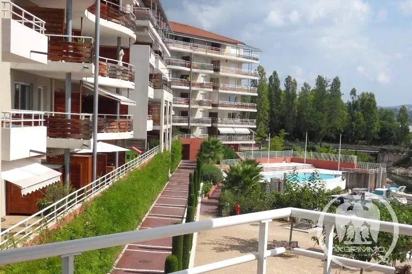 Near Cannes. Charming, quiet, overlooking a marina. In the lovely Marina Parc estate, delightful 3-room apartment with terrace facing the marina. 69 sqm comprised of: entrance hall, living room, two bedrooms, bathroom, separate toilet, fully equipped independent kitchen, cellar, parking space, and underground garage. The living room and kitchen open onto the beautiful sun-drenched terrace with views of the park and marina. The apartment is bright and in excellent condition. Prime location and very pleasant to live in the center of Mandelieu, surrounded by greenery and gardens, in a quiet area. Nevertheless, close to shops and all amenities.
