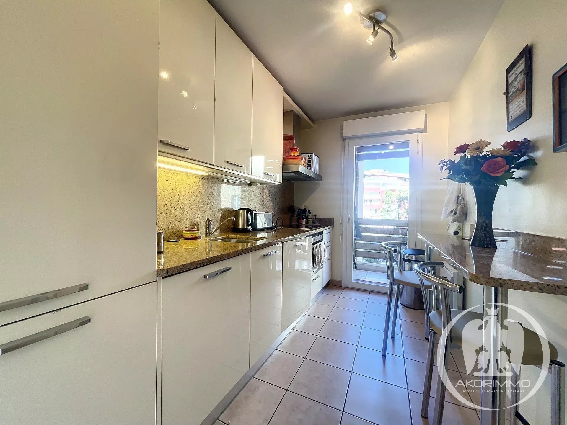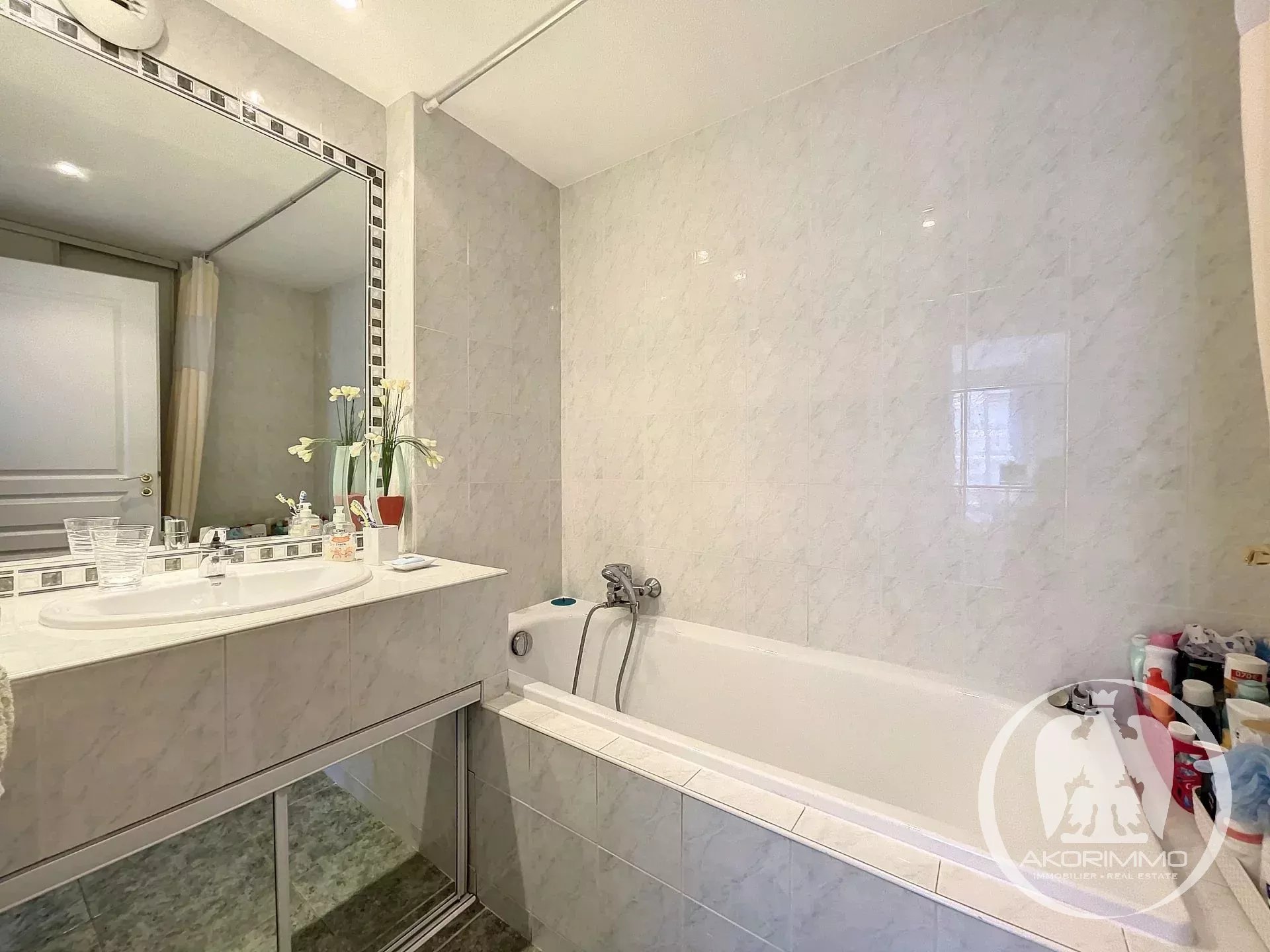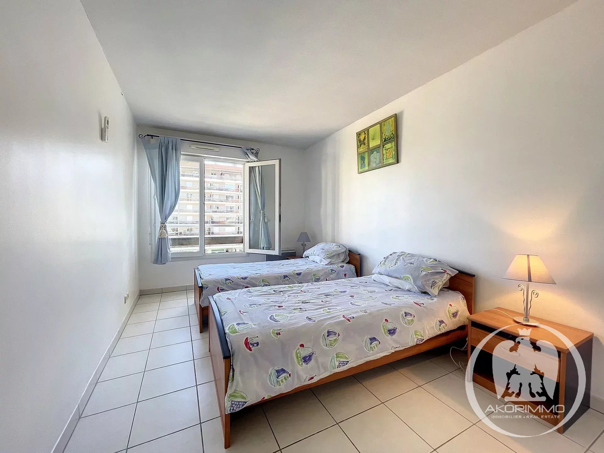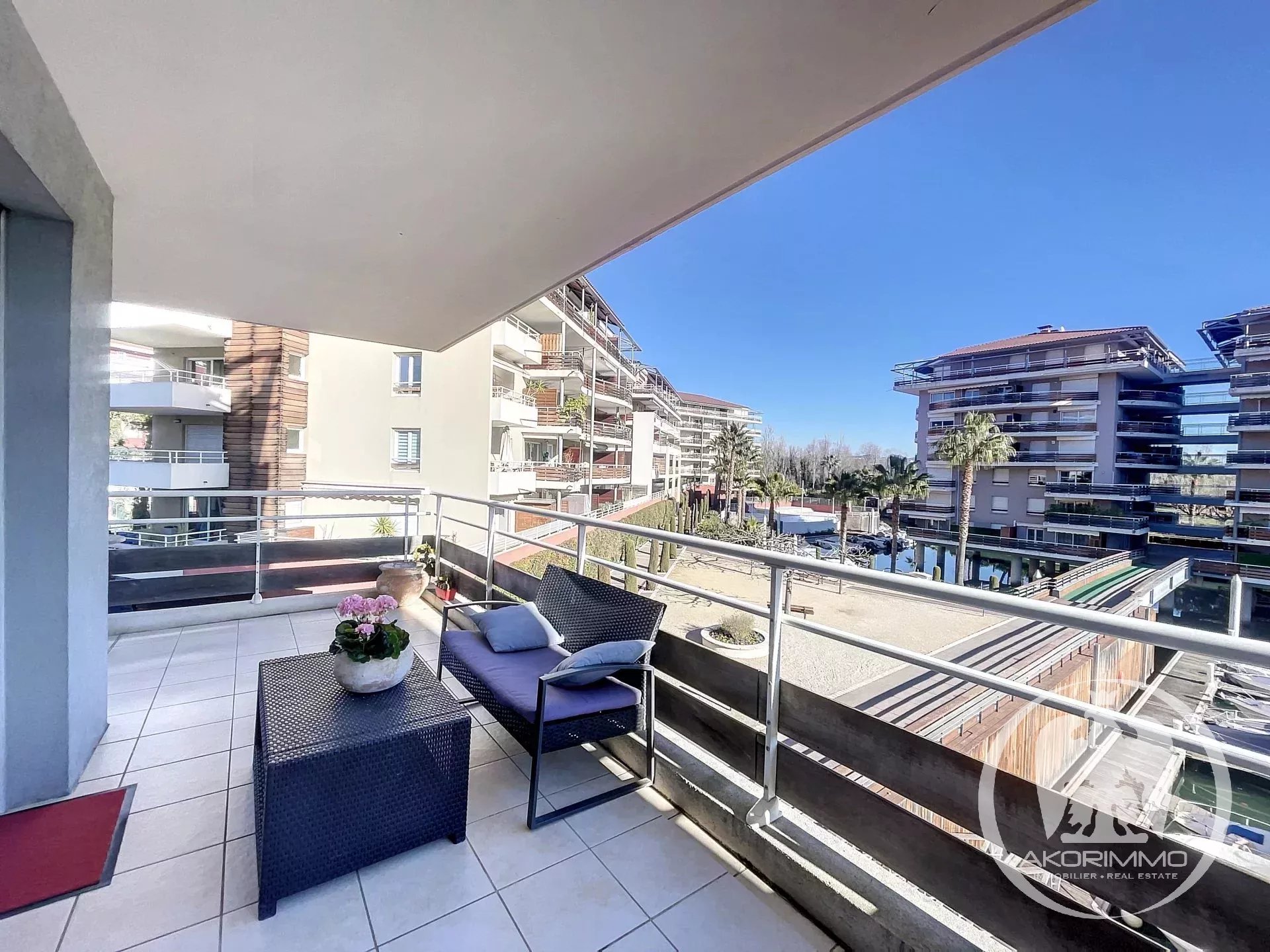 Near Cannes. Charming, quiet, overlooking a marina. In the lovely Marina Parc estate, delightful 3-room apartment with terrace facing the marina. 69 sqm comprised of: entrance hall, living room, two bedrooms, bathroom, separate toilet, fully equipped independent kitchen, cellar, parking space, and underground garage. The living room and kitchen open onto the beautiful sun-drenched terrace with views of the park and marina. The apartment is bright and in excellent condition. Prime location and very pleasant to live in the center of Mandelieu, surrounded by greenery and gardens, in a quiet area. Nevertheless, close to shops and all amenities.