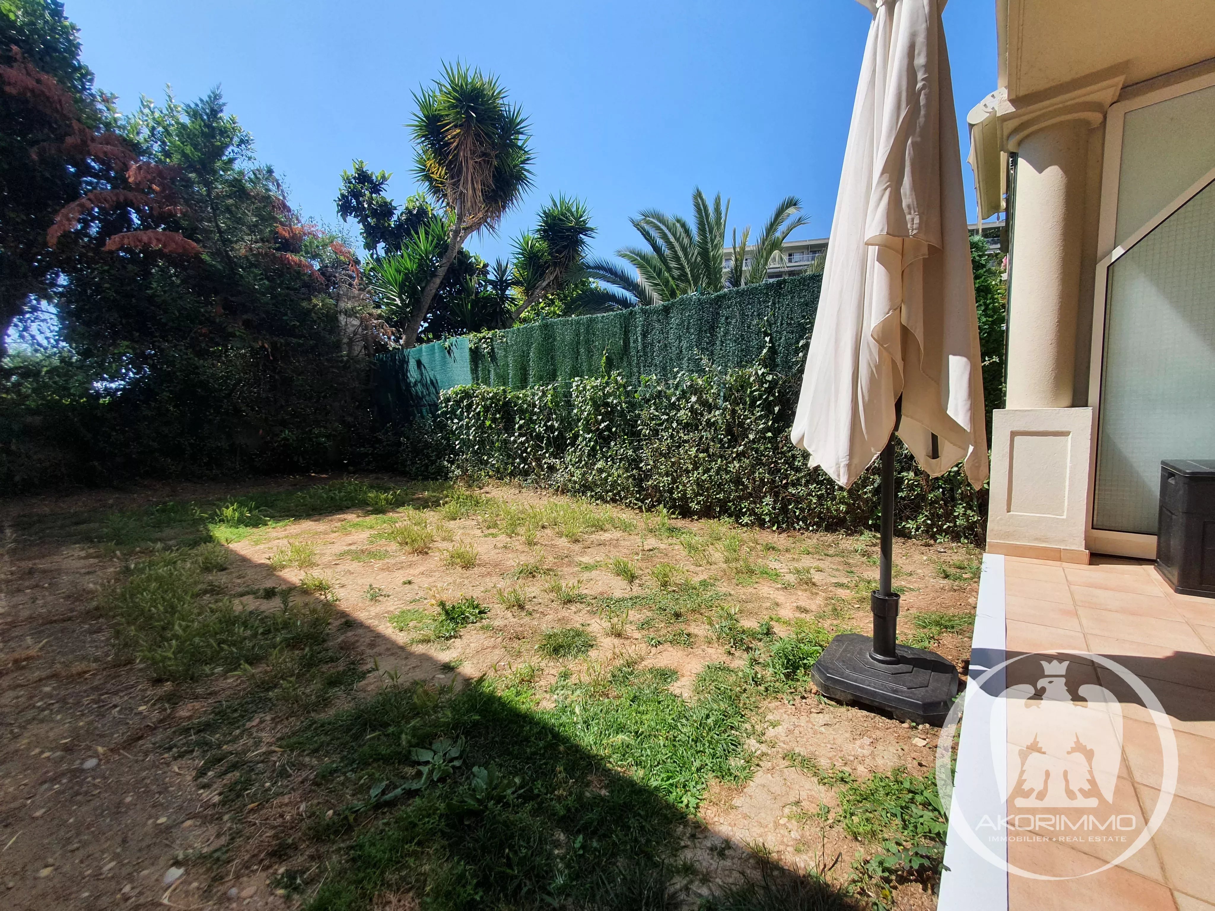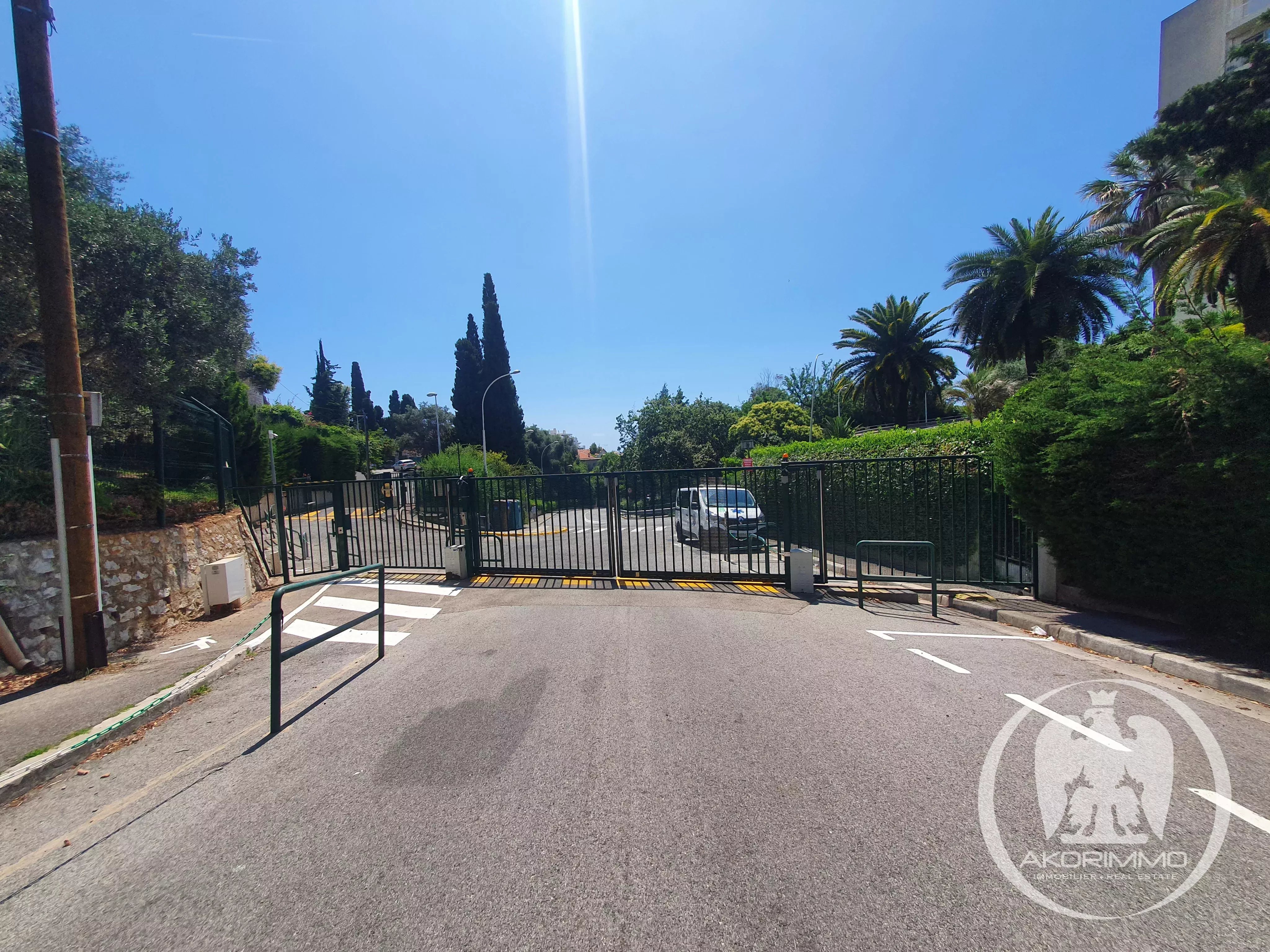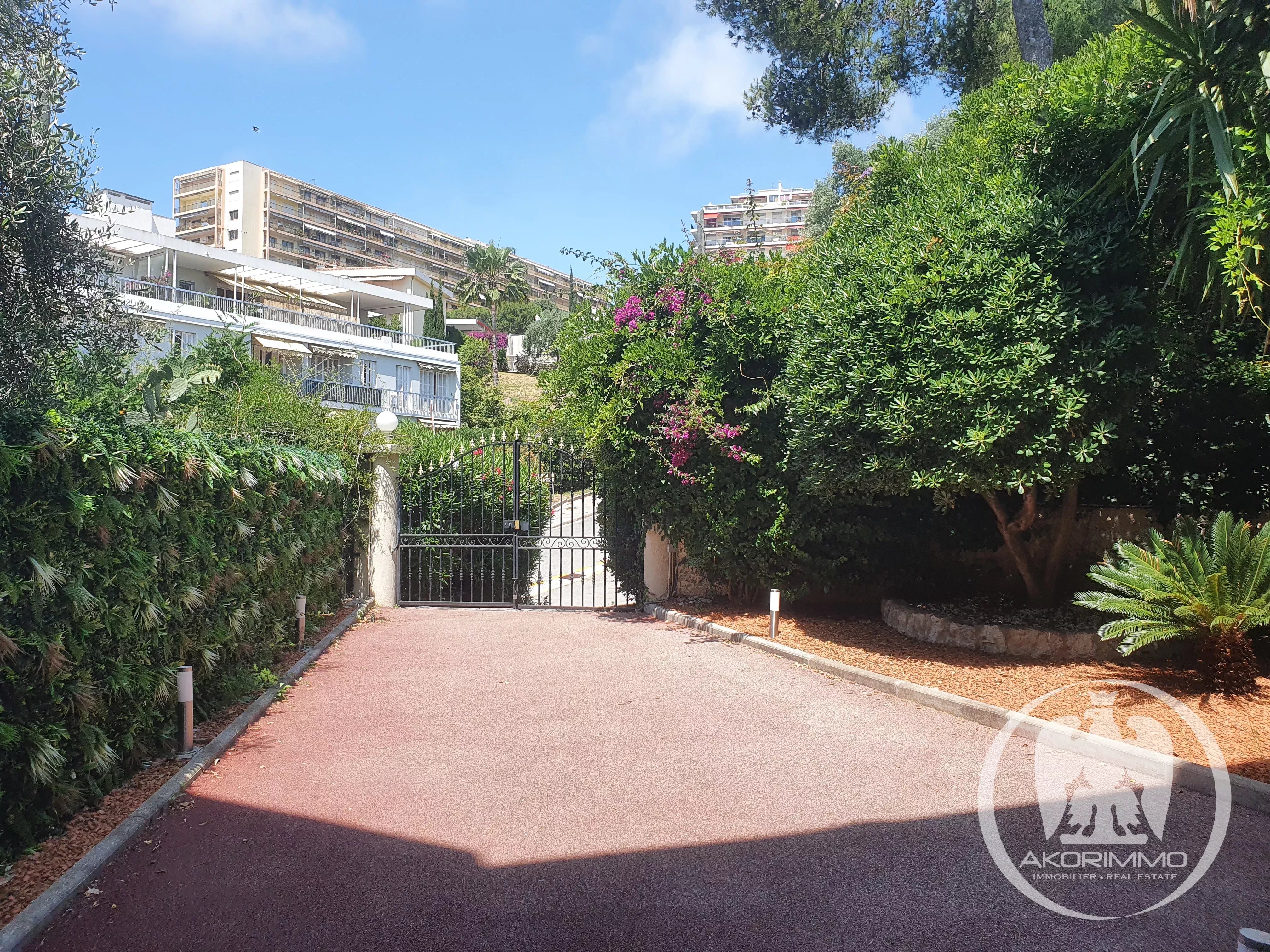 In a very beautiful, secure, high-end residence, sunny and surrounded by greenery, located at the bottom of Fabron in a residential environment.