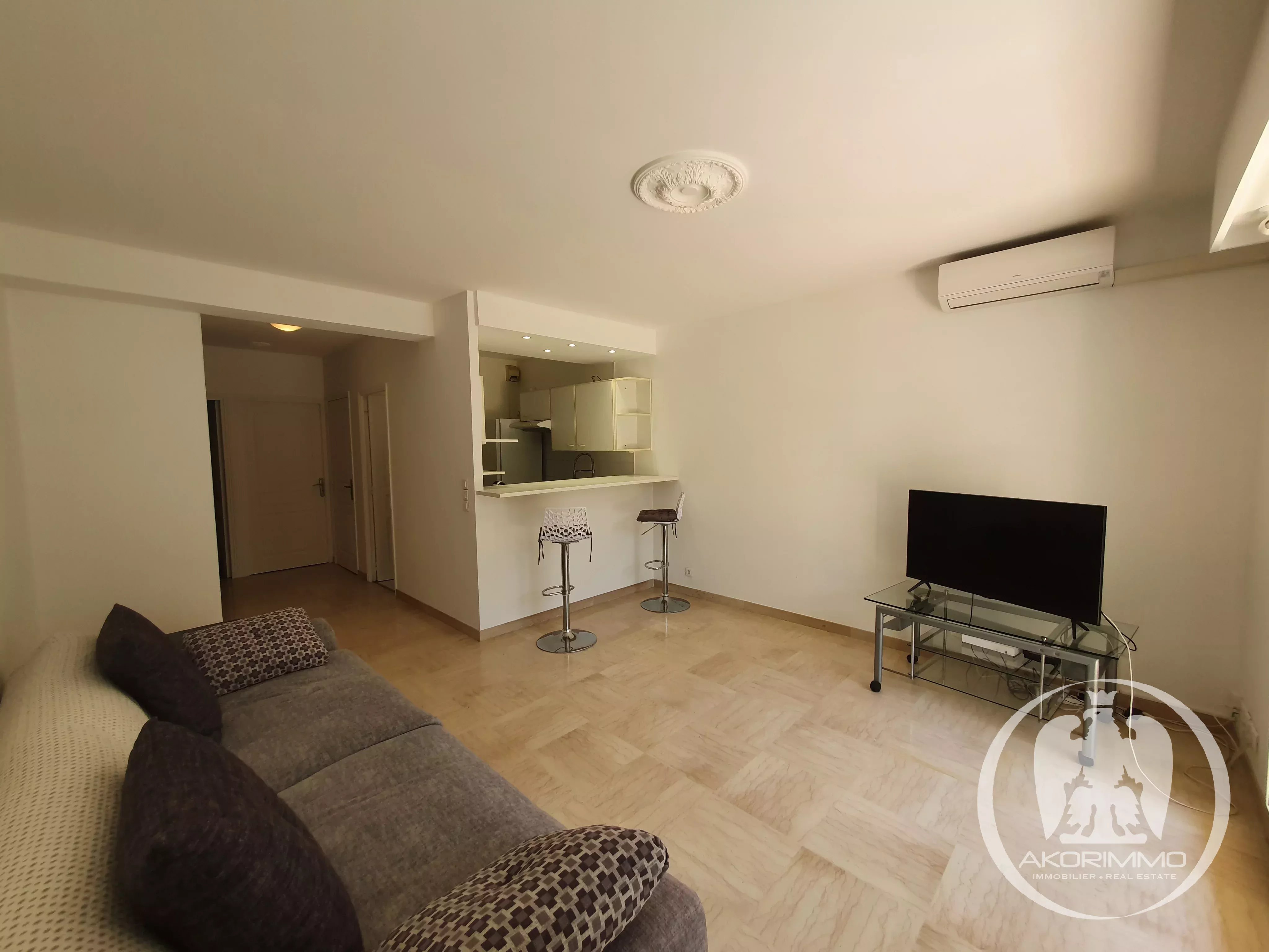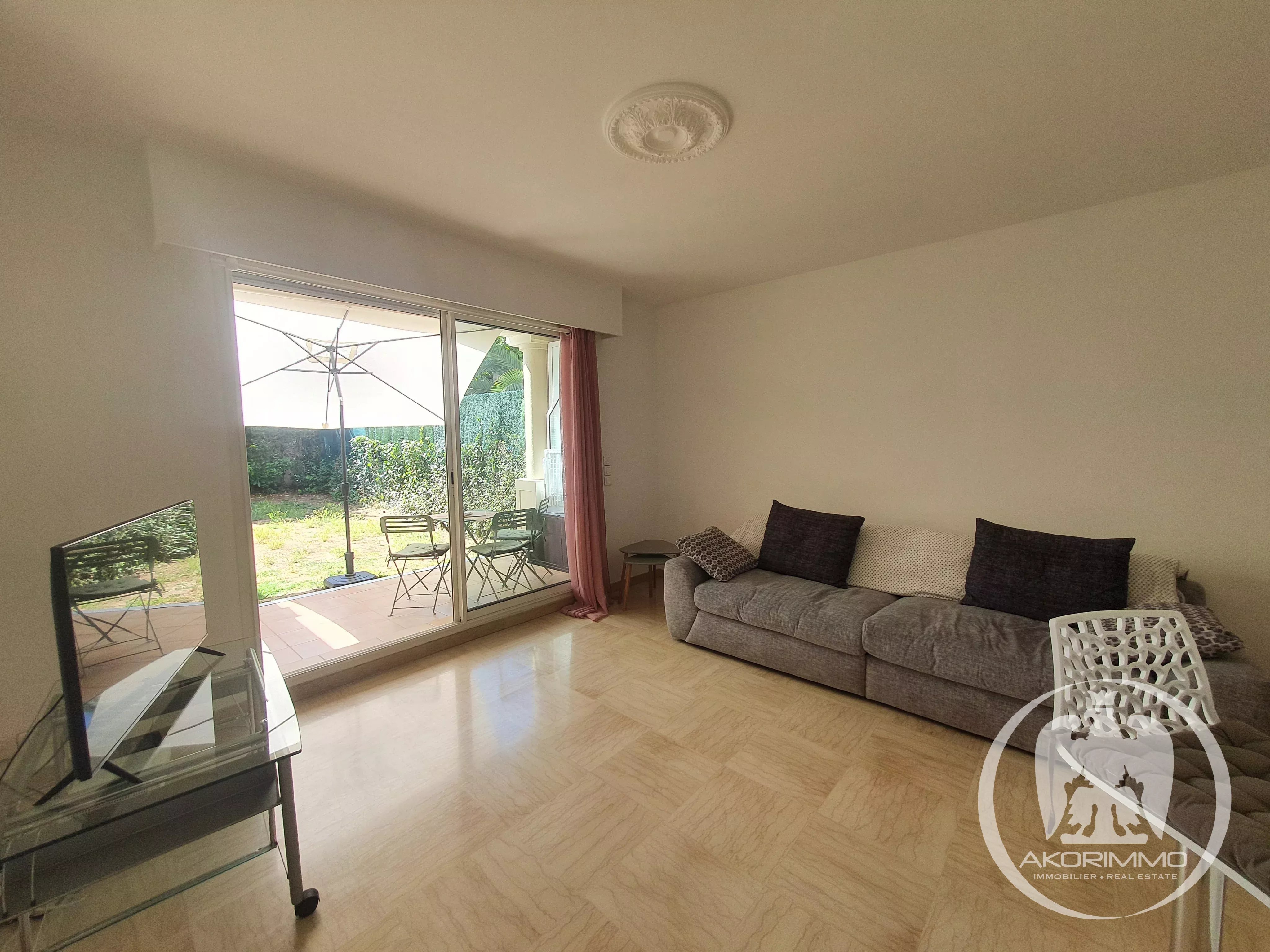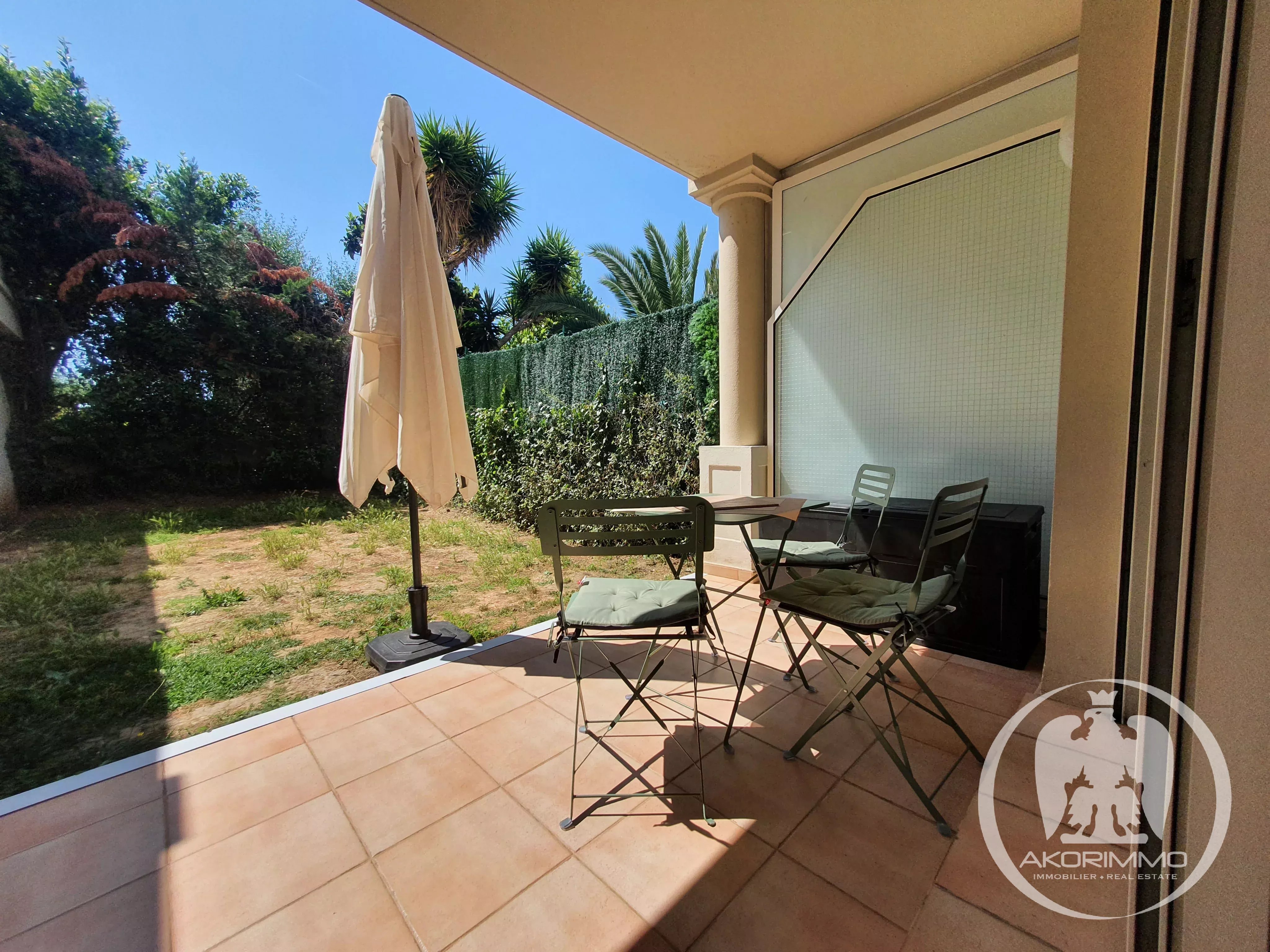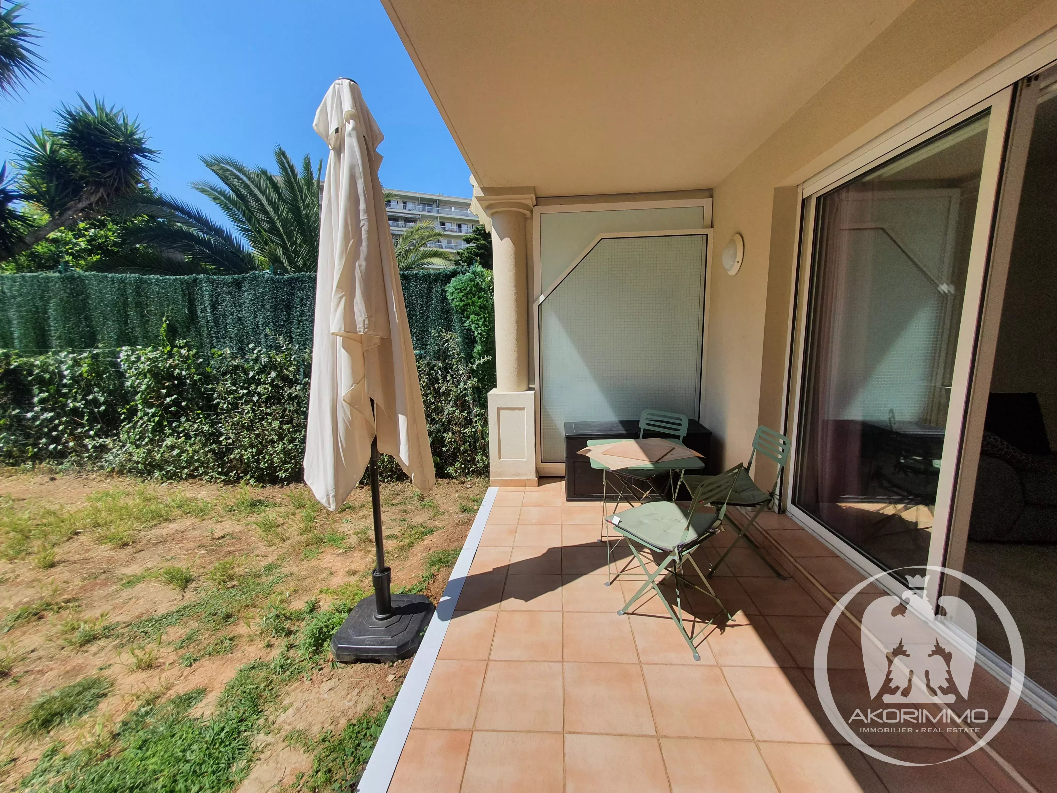 In a very beautiful, secure, high-end residence, sunny and surrounded by greenery, located at the bottom of Fabron in a residential environment.
