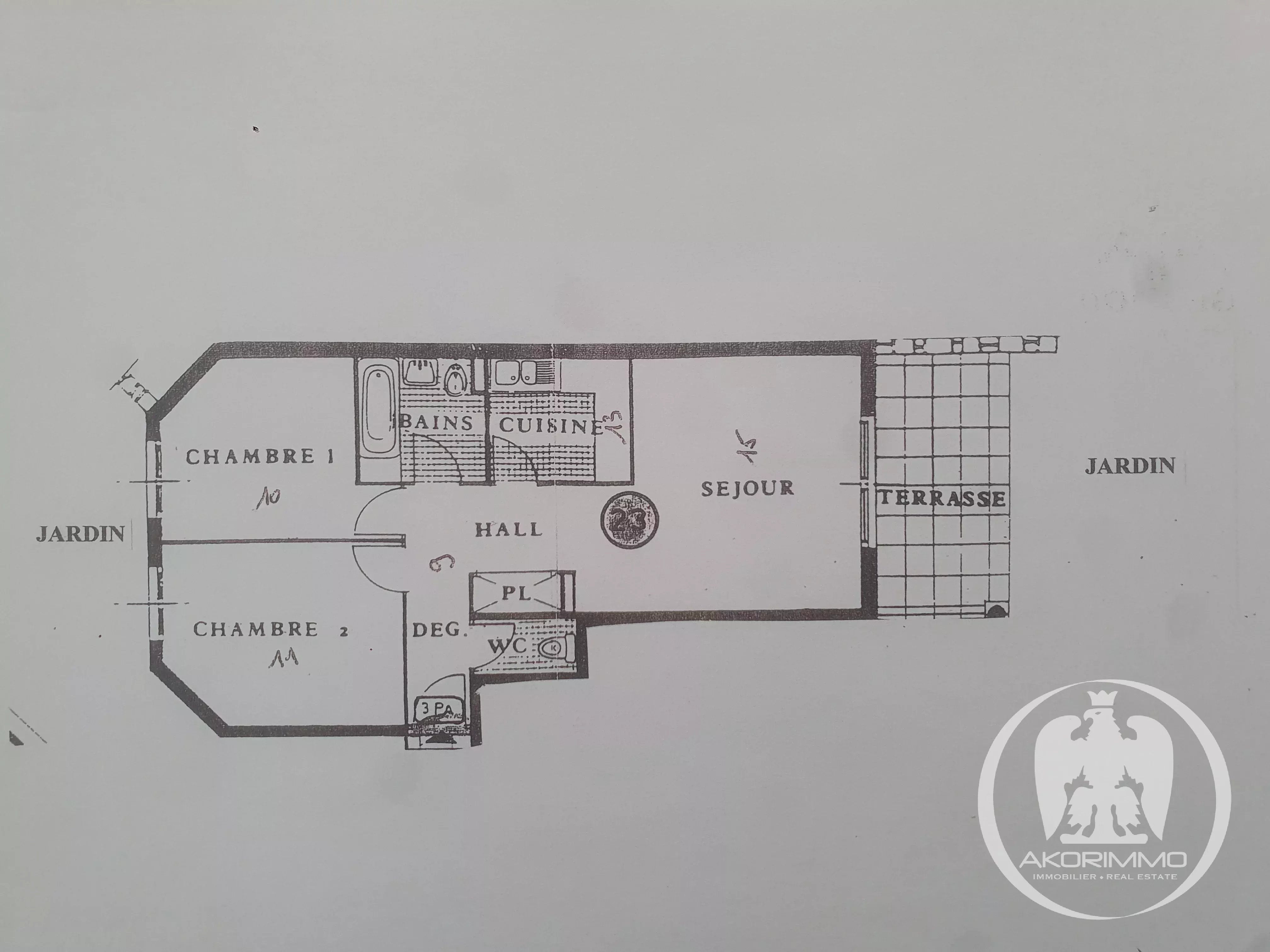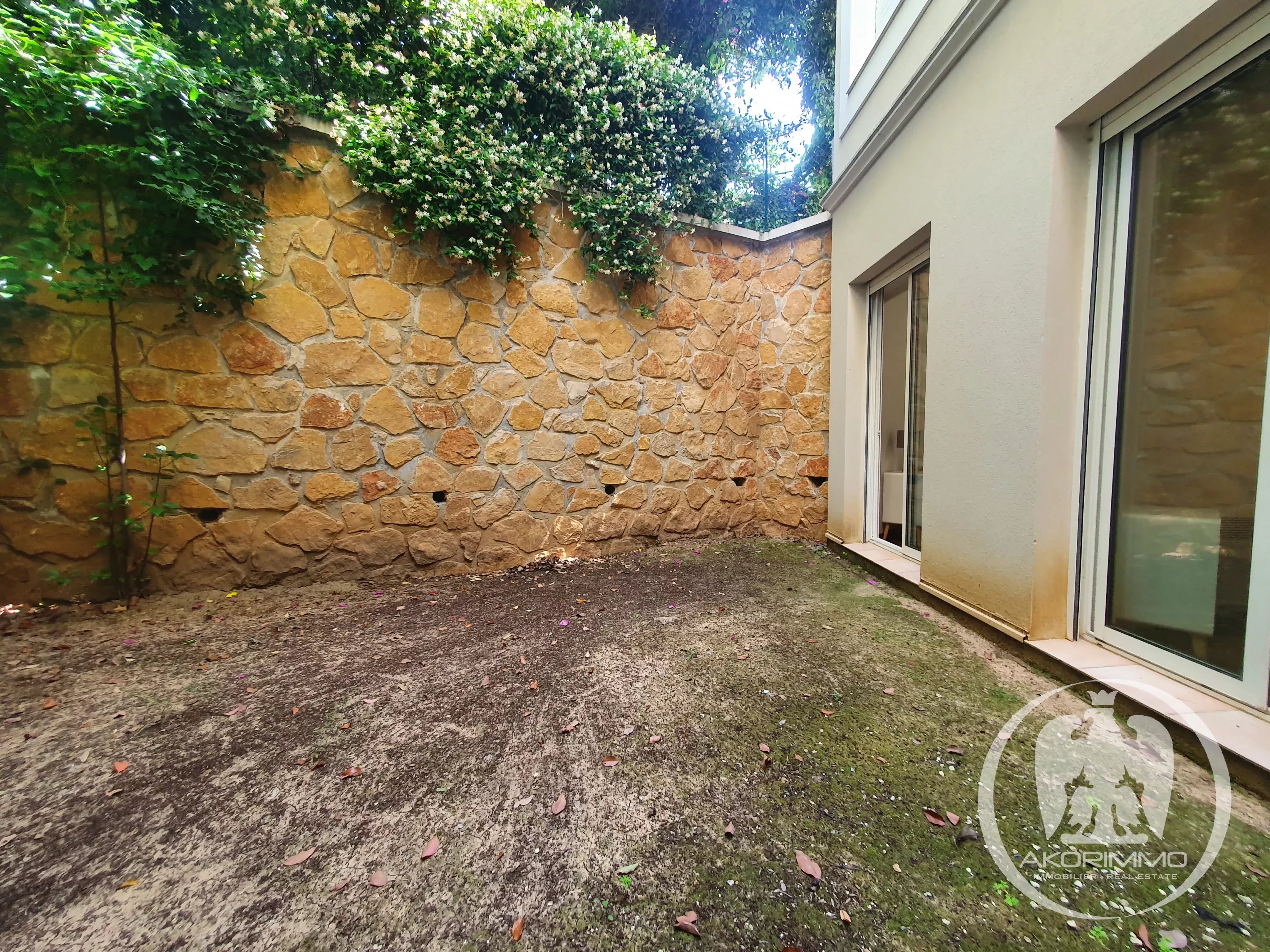 Magnificent 3-room apartment of 56 m², well laid out, on the ground floor with through exposure, enjoying peace and great brightness thanks to its orientation. It consists of an entrance/hallway with a closet, a beautiful living room with a 9 m² terrace overlooking a 45 m² garden, a fully equipped and fitted open kitchen, a lovely bedroom with a closet and a garden view, a second bedroom also opening onto the garden, a bathroom, a separate toilet, and a cellar. Possibility to purchase a double closed garage in the building's basement, with direct access by elevator.