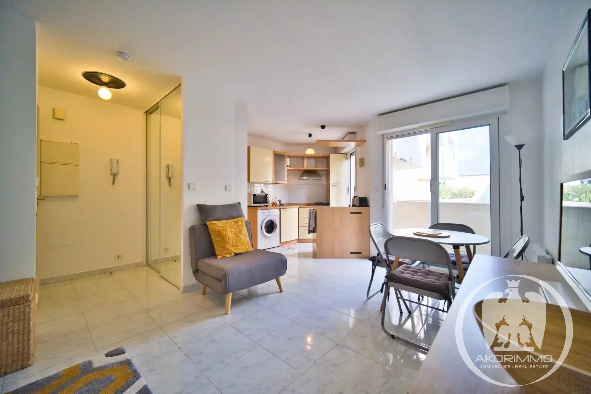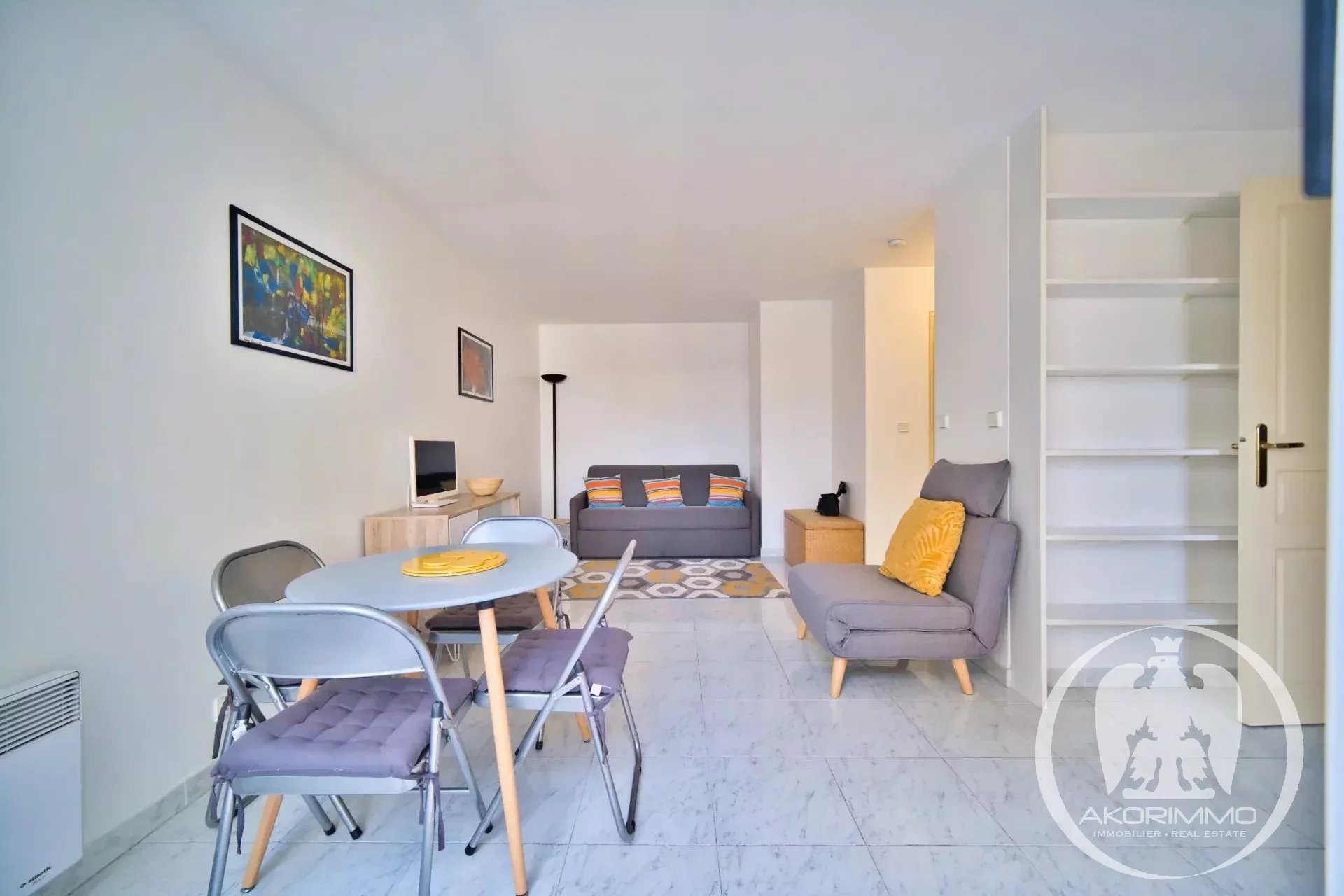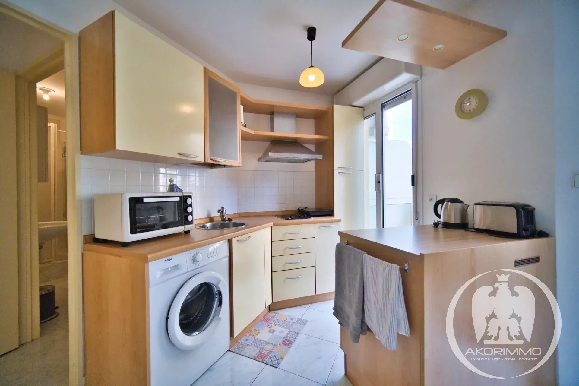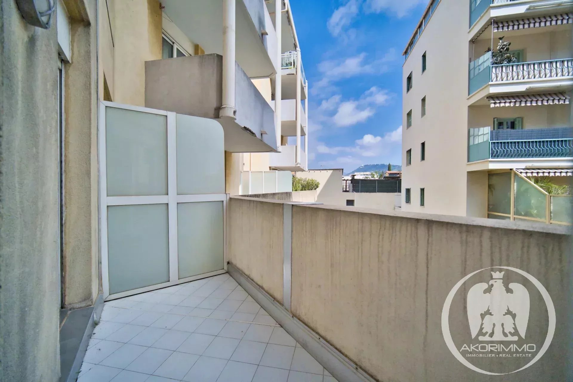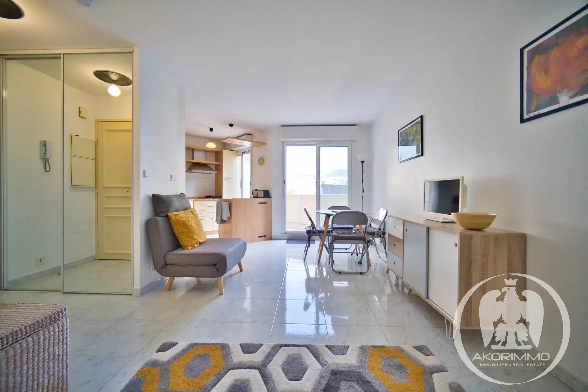 The space consists of a bright main room, a functional kitchenette, a bathroom, and a small terrace, perfect for enjoying the mild Nice evenings.