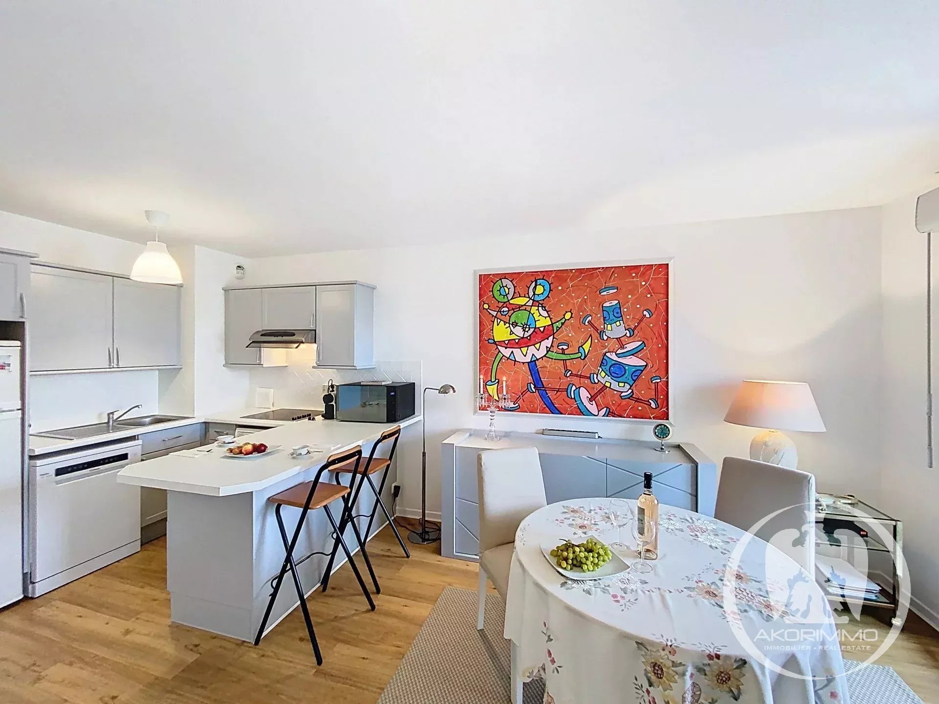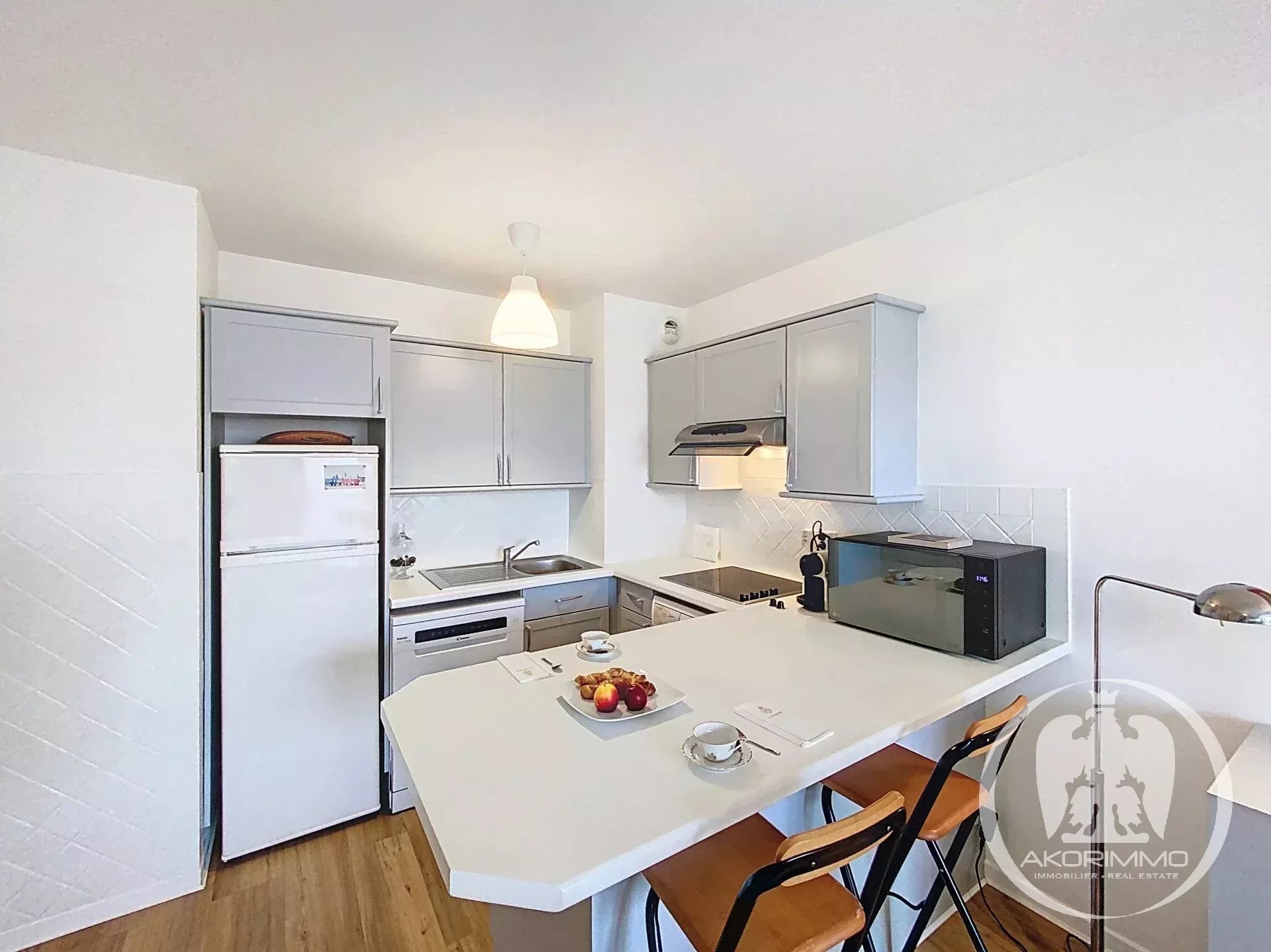 The 55 m² apartment consists of an entrance, a fully fitted and equipped kitchen open to the living room with terrace and lounge, a bedroom with walk-in closet, a bathroom with large shower, and a separate toilet.