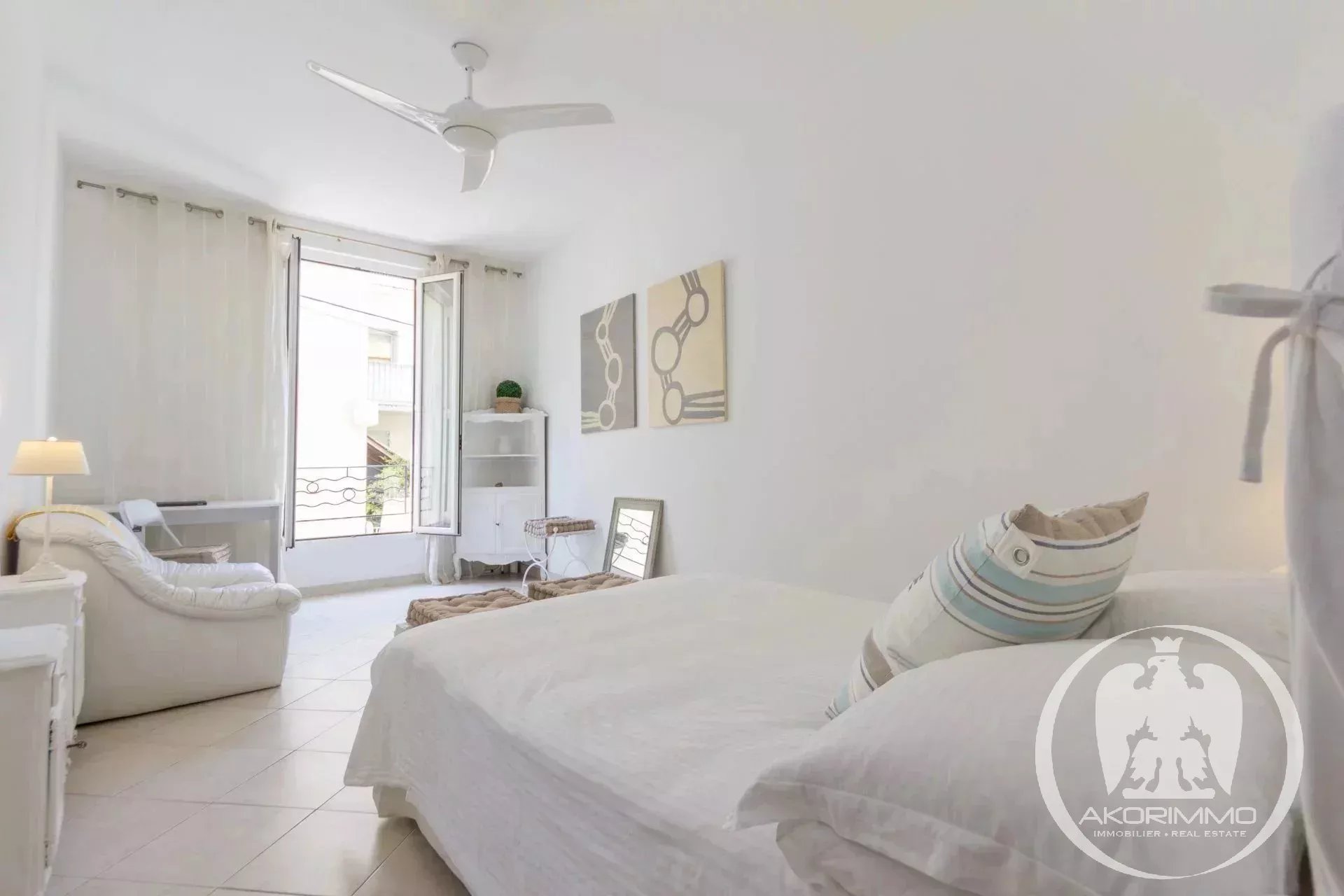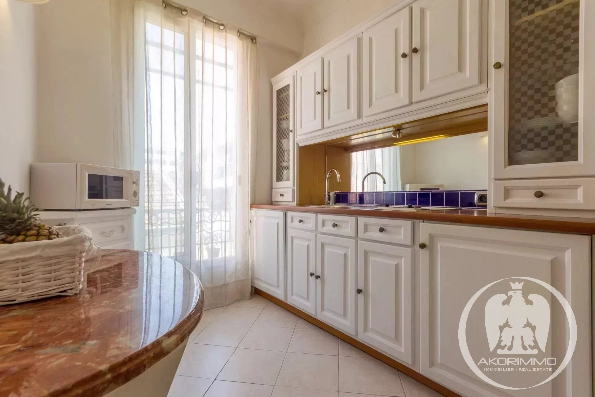 PORT OF NICE: Very beautiful location just steps from La Réserve beach and the port. Quietly situated in a small condominium, lovely south-facing two-room apartment, air-conditioned and cross-ventilated, 41 m², equipped open-plan kitchen, large walk-in closet, close to all shops and public transport (tram and bus).