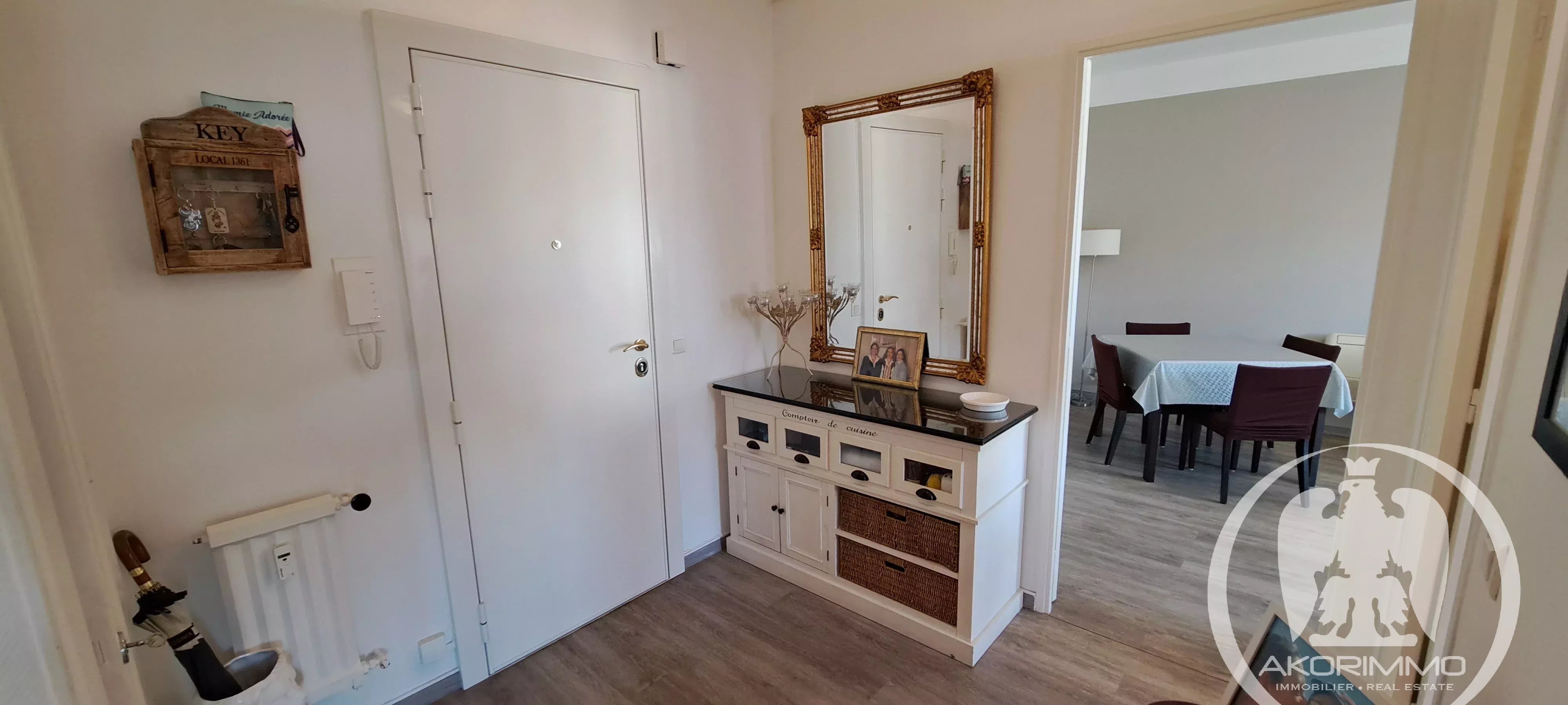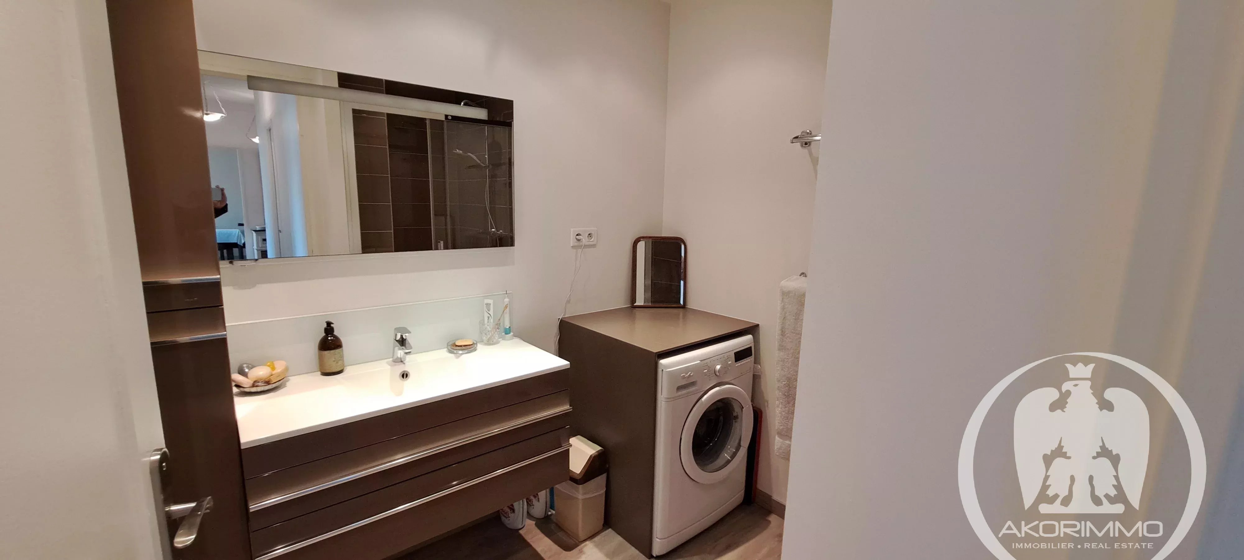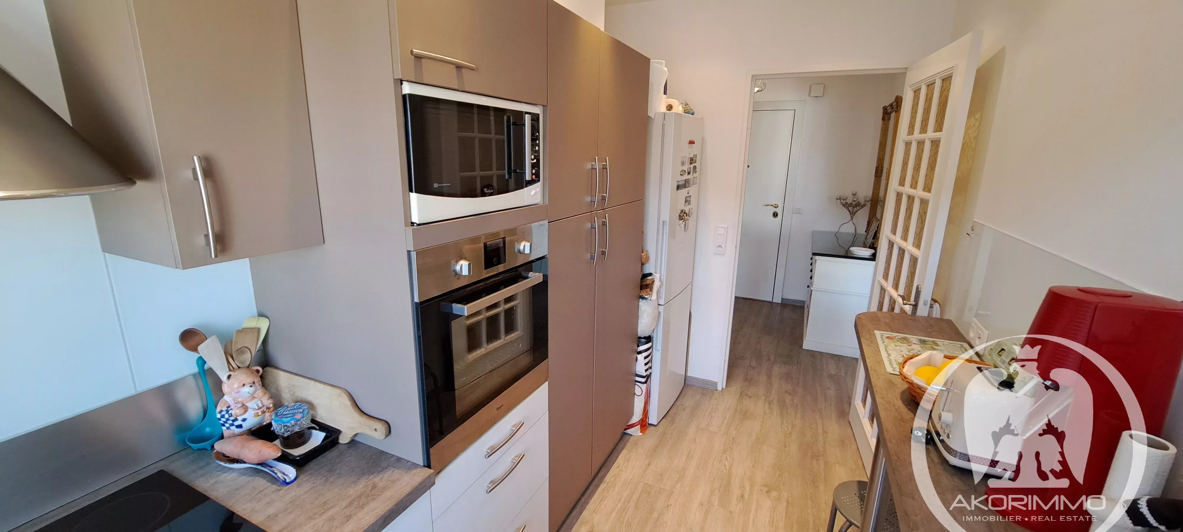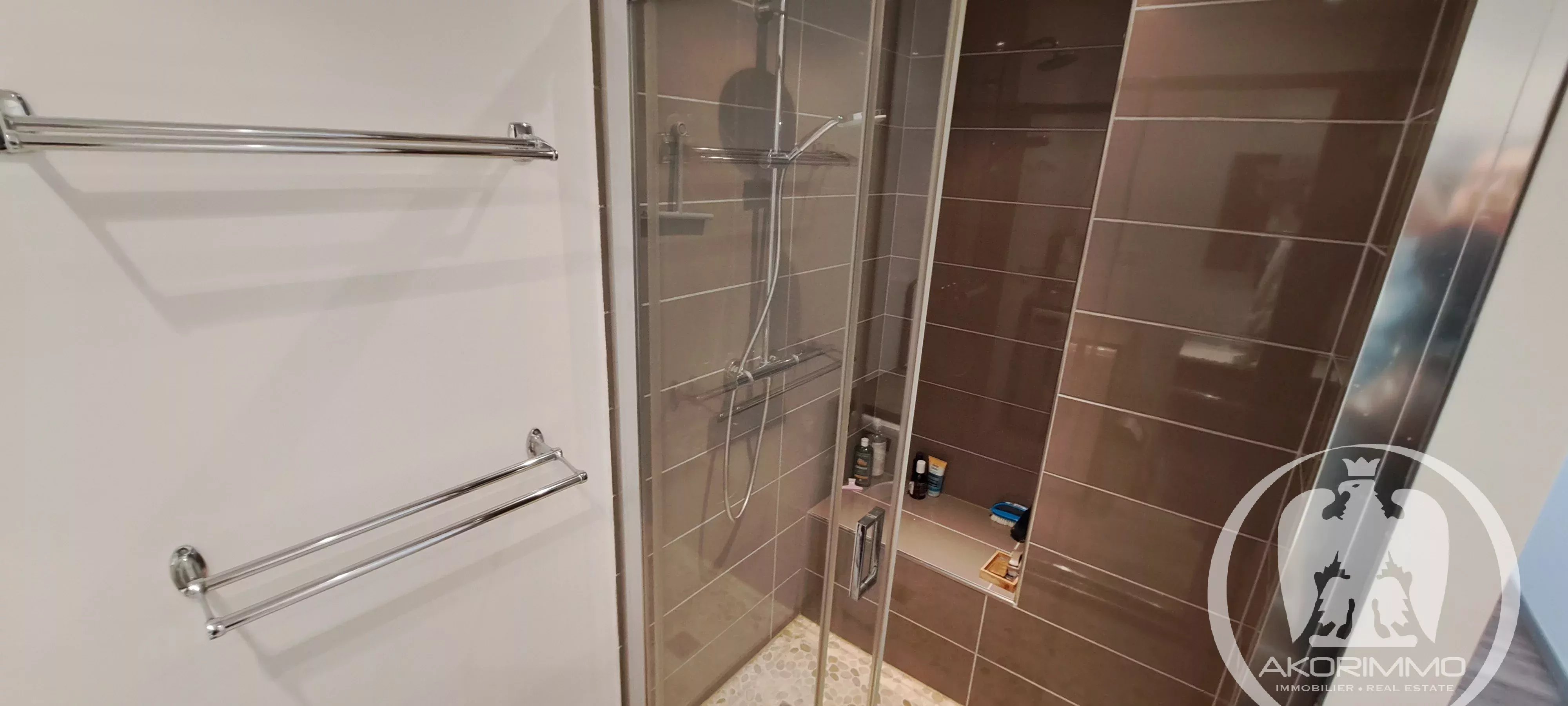 Three-room apartment in perfect condition, located on the 6th and second-to-last floor with elevator, unique east-facing exposure. Comprising an entrance with closet, a living room with a 6 m² terrace, an independent kitchen (open-plan possible), two beautiful bedrooms with hardwood floors, a shower room, and a separate toilet. Cellar and garage in the basement.