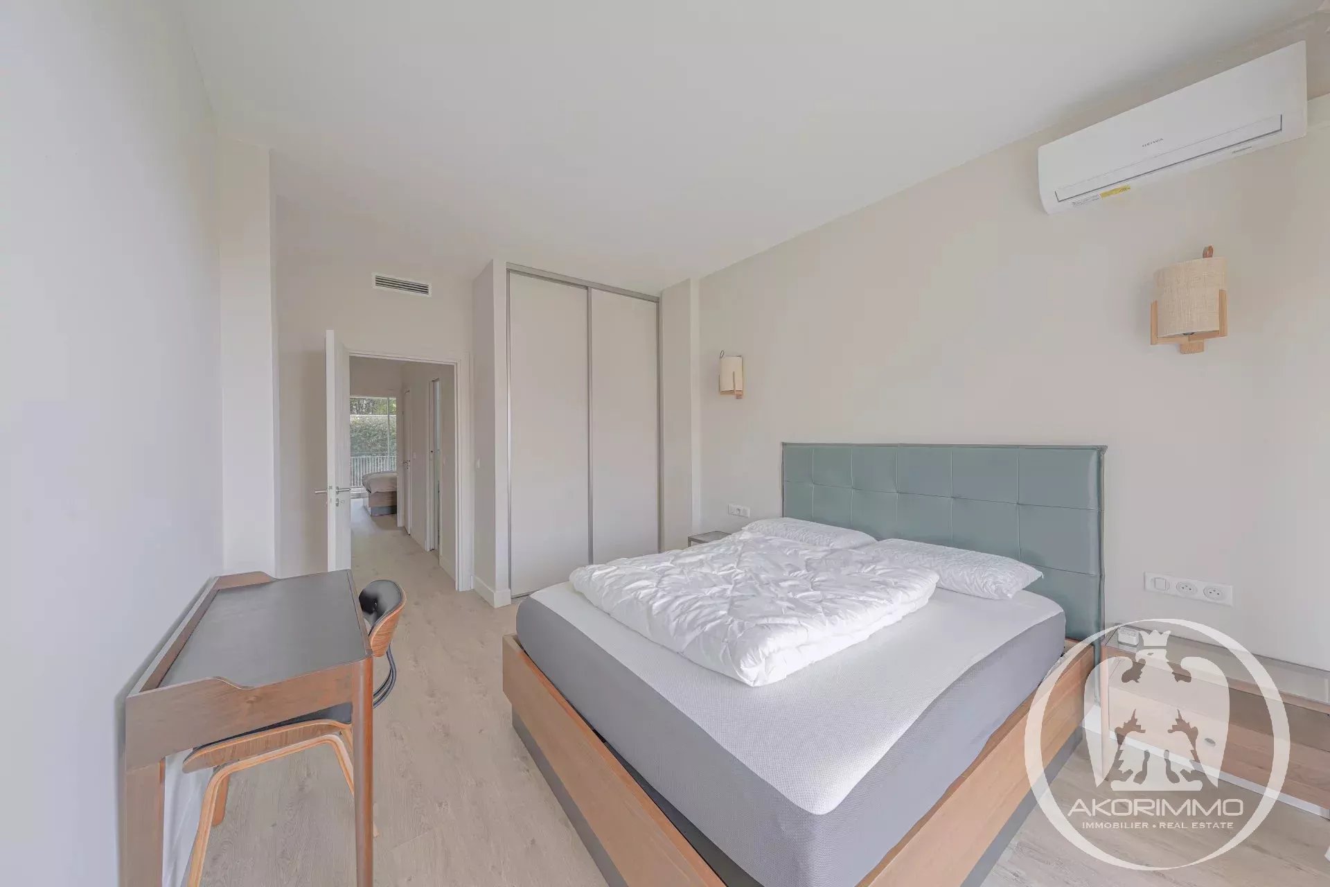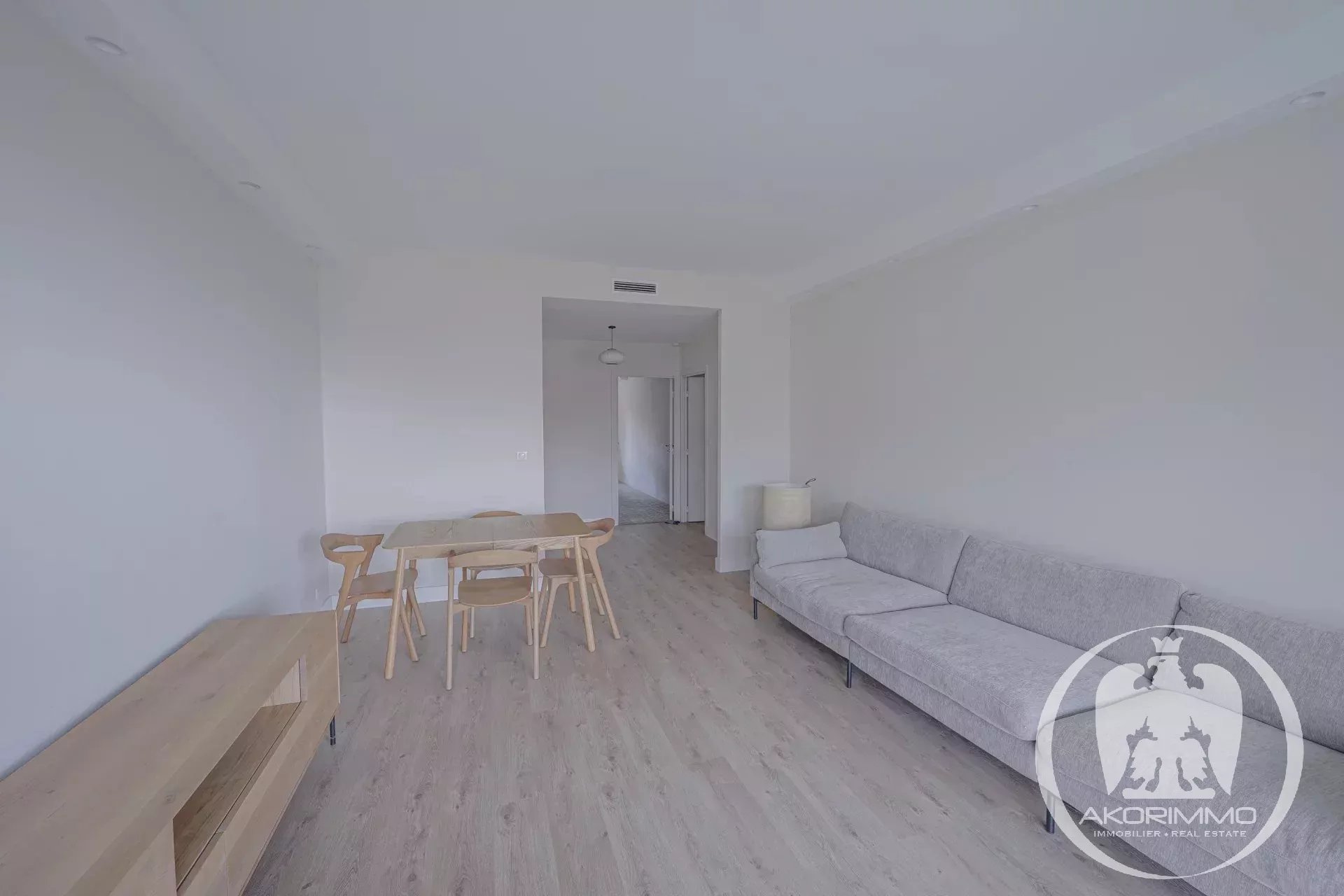 The spacious and fully equipped kitchen blends harmoniously with the living space. The apartment has two large bedrooms, offering comfort and generous volumes, as well as a smooth and functional layout.