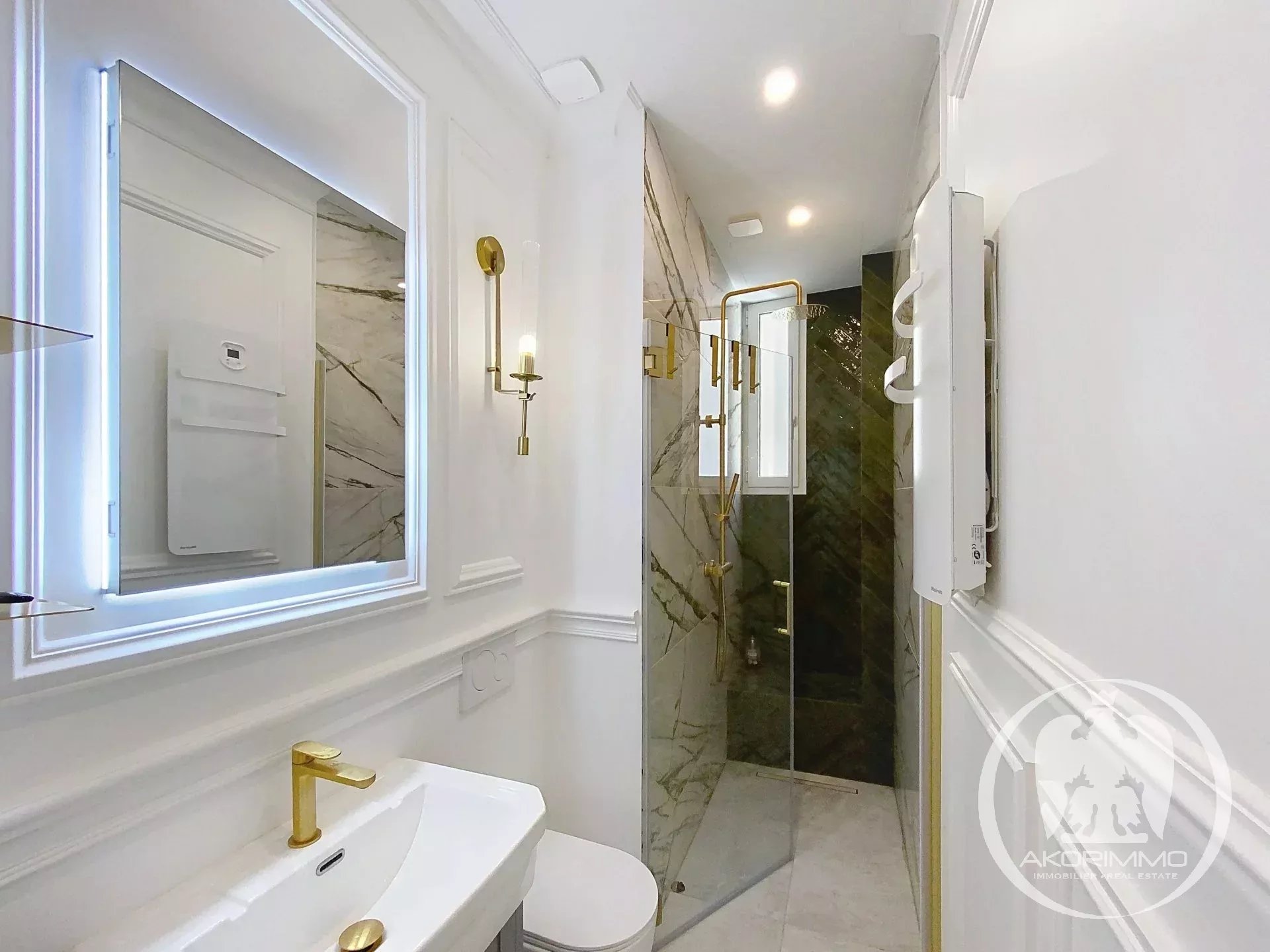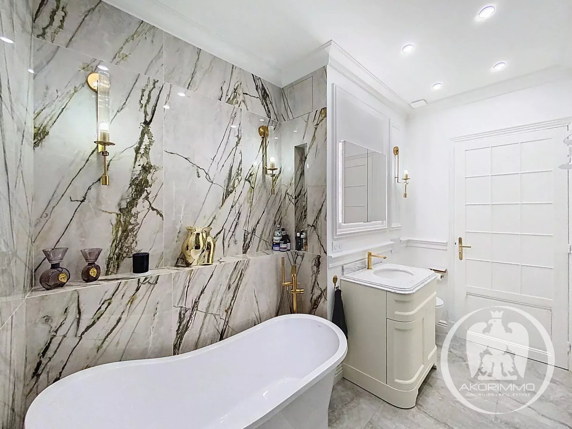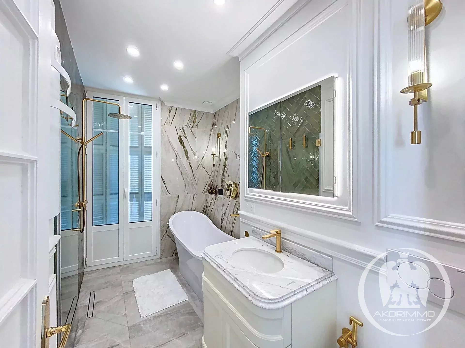 – two bathrooms with refined finishes and BRASS fixtures