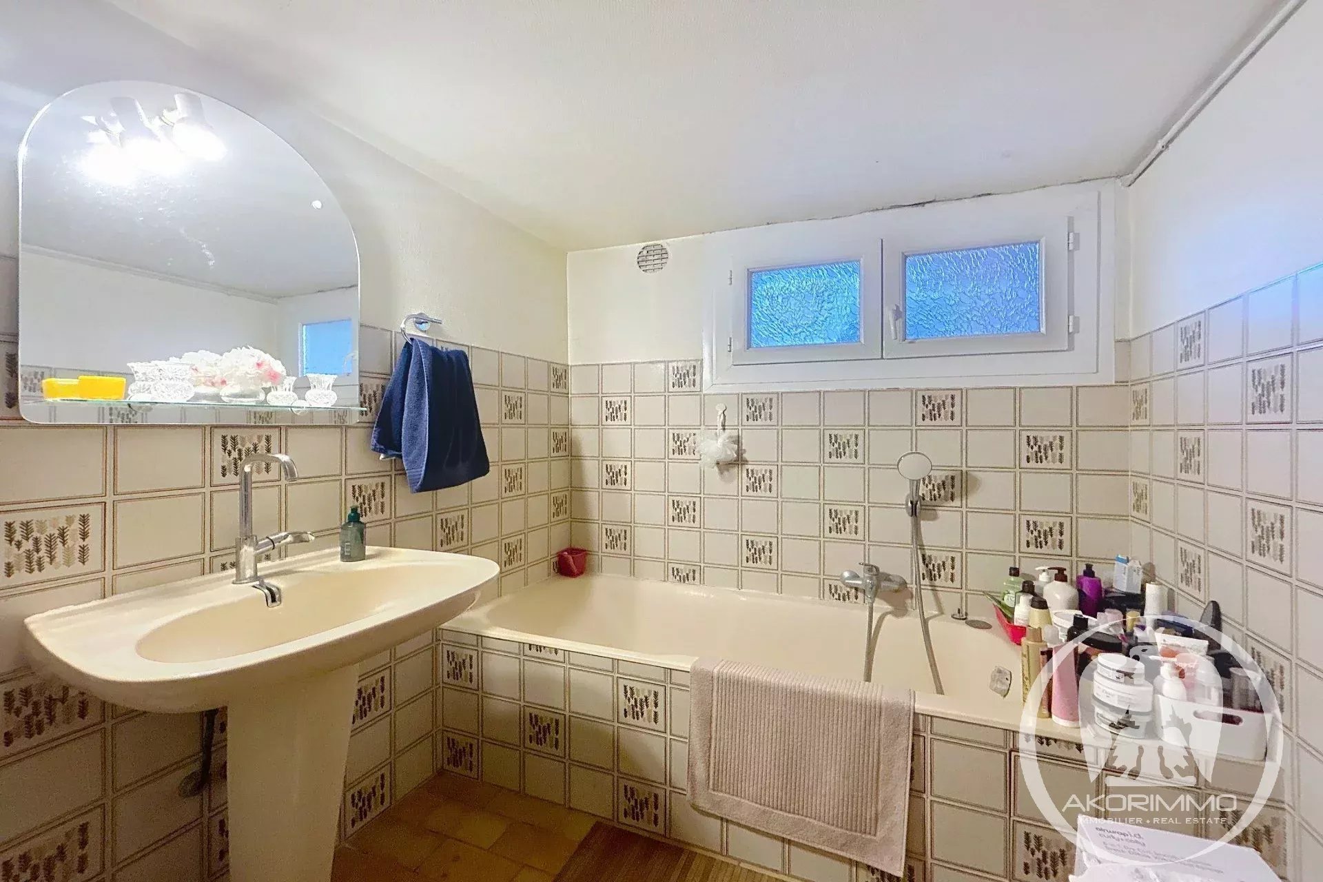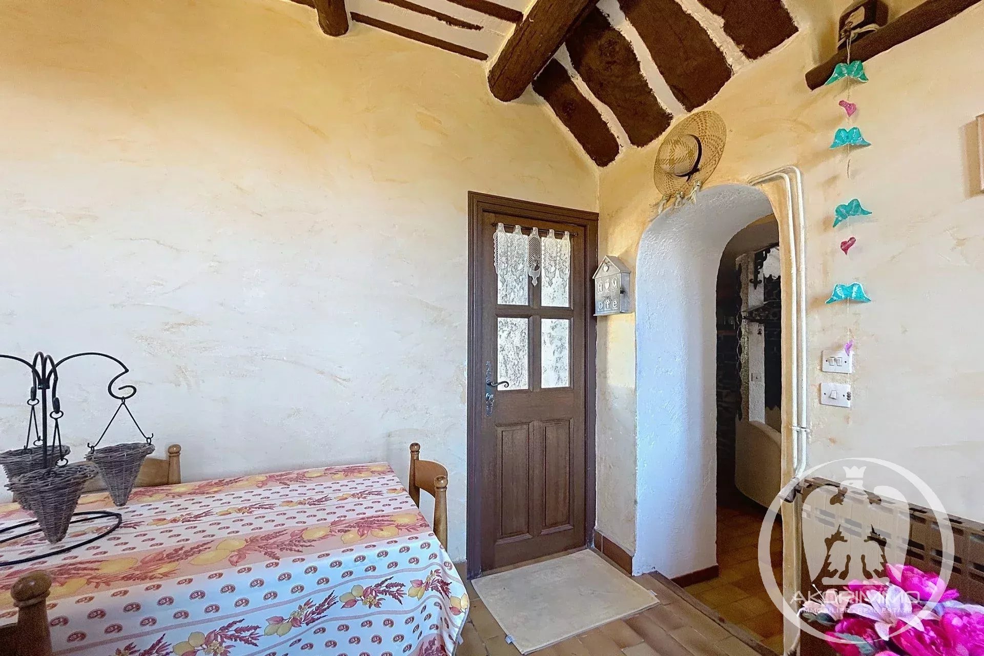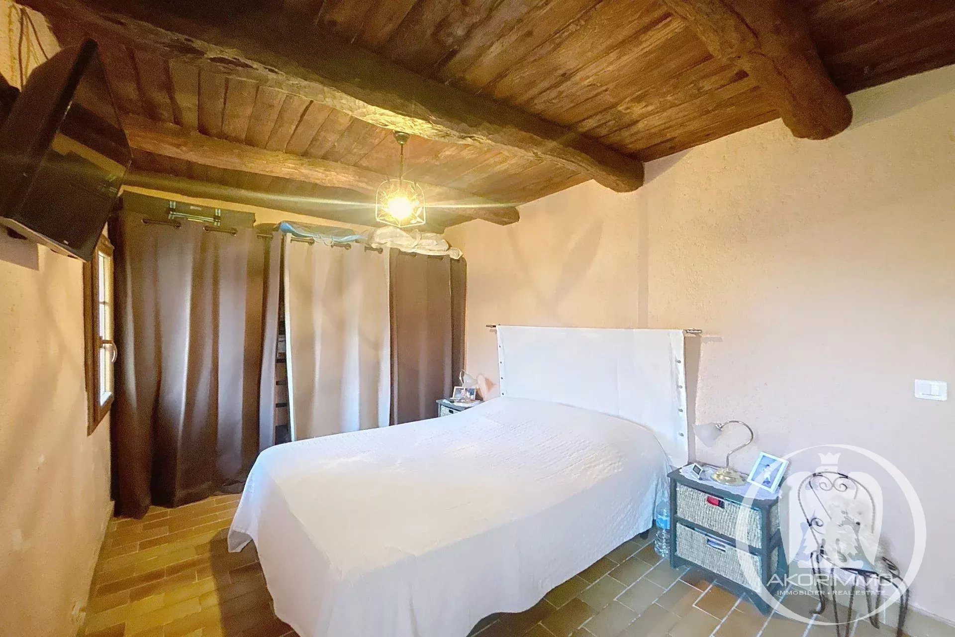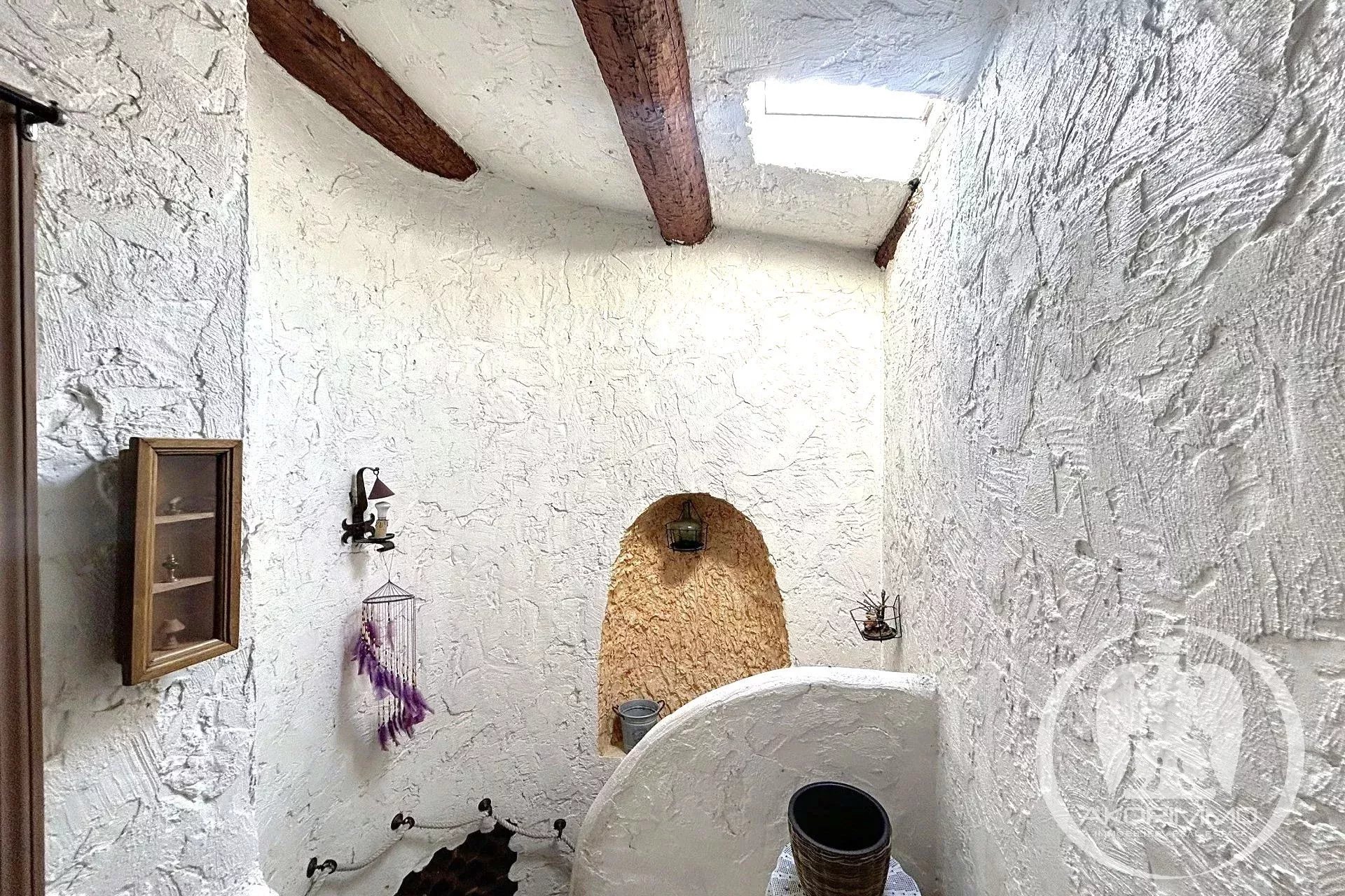 A charming semi-detached house on one side and on 3 levels, with an area of 97 m². Built in a former farmhouse, the house includes a living room, a separate fitted kitchen, three bedrooms, two bathrooms, various storage spaces such as a laundry room and a walk-in closet. The house is set on a 150 m² plot, with a few parking spaces, a large garden, and three terraces. A true haven of peace with an unobstructed view of the mountains, offering stunning sunsets!