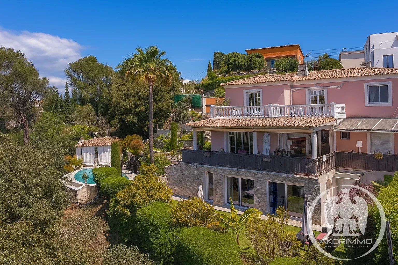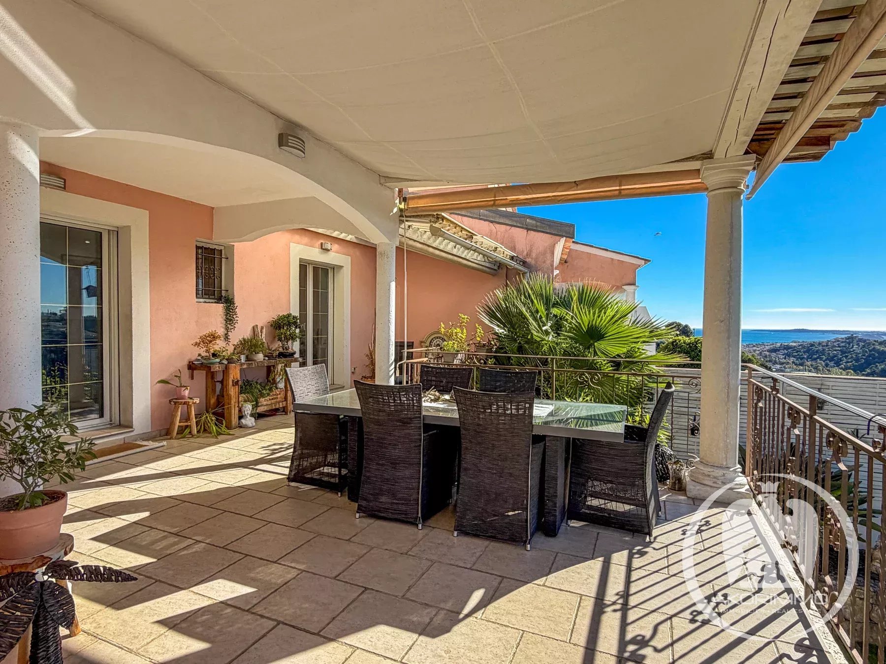 EXCLUSIVE: CAGNES-SUR-MER, Les Collettes District: Very close to the center, superb 233 m² villa with high-end features. On the main level, you'll find a very large, light-filled living room with its spacious modern kitchen, and a ground-floor bedroom, all opening onto a terrace with unobstructed views of the surrounding hills and the sea. Upstairs, 3 bedrooms open onto a beautiful terrace, 2 bathrooms, and a separate toilet. On the garden level, the house offers a stunning 50 m² wellness area with hammam, sauna, and gym, as well as a lovely 2-room apartment designed to be accessible from both inside the main house and via a separate entrance, which is a real asset for personal use, hosting guests, or renting.