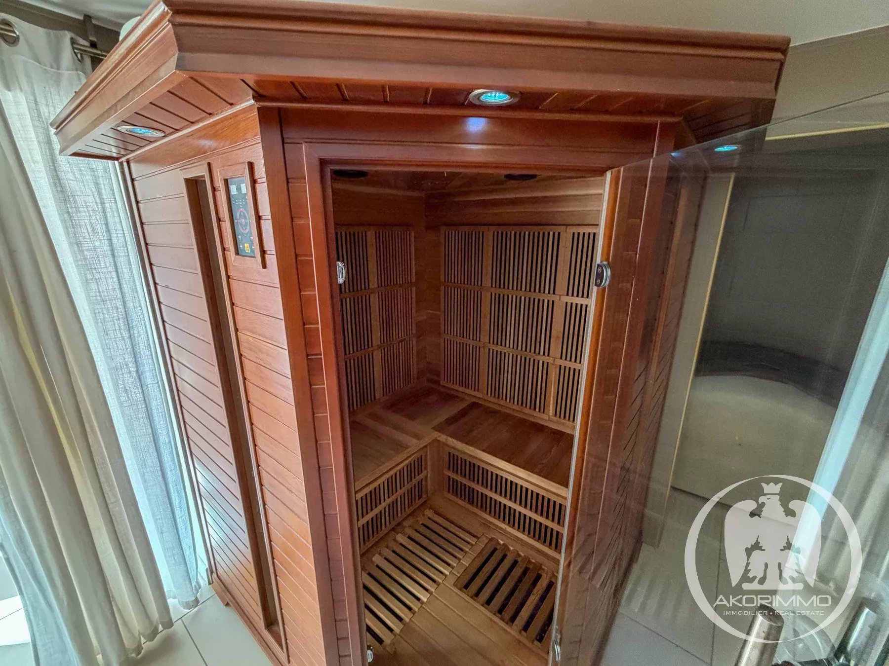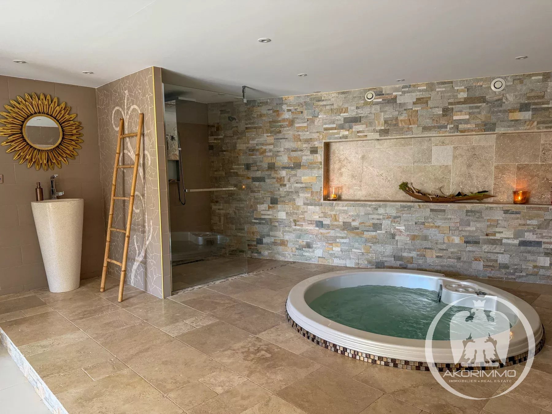 In terms of equipment, this high-end home offers a quality kitchen, heat pump, underfloor heating, double glazing, some pocket sliding patio doors, reversible air conditioning, infinity pool, and electric gate.