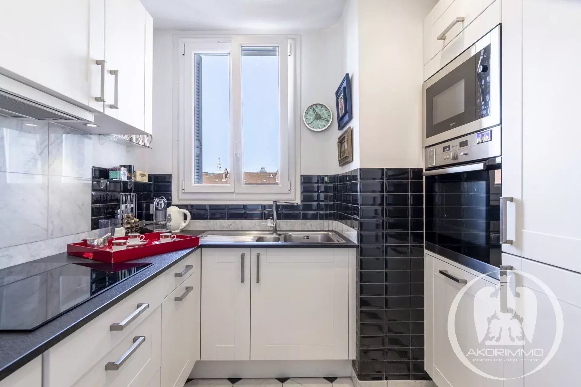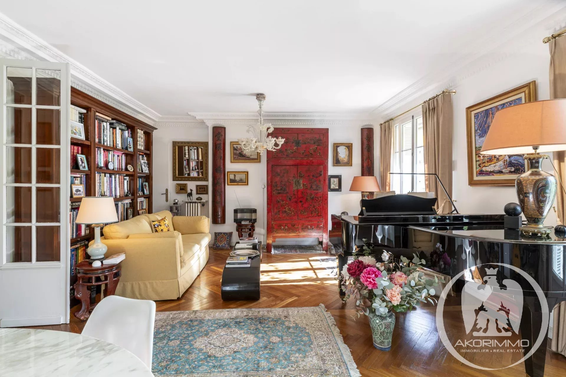 Actuellement configuré en 3/4 pièces, ce bien propose une entrée spacieuse qui distribue au sud un double sejour de 35m² et une chambre de 16m² avec penderie, au nord une cuisine moderne entièrement équipée, et à l'ouest une seconde chambre de 11m² avec penderie et un salon/bureau de 15m² (qui peut bien sûr être une troisième chambre). Il dispose d'une salle de bain avec wc ainsi que d'une salle de douche avec wc. De nombreuses penderies aménagées participent au confort de ce bien au charme indéniable : belle hauteur sous plafonds, moulûres, parquet massif, cheminée... Pour autant le confort moderne est au rendez-vous grâce aux huisseries en pvc double vitrage et à la climatisation.