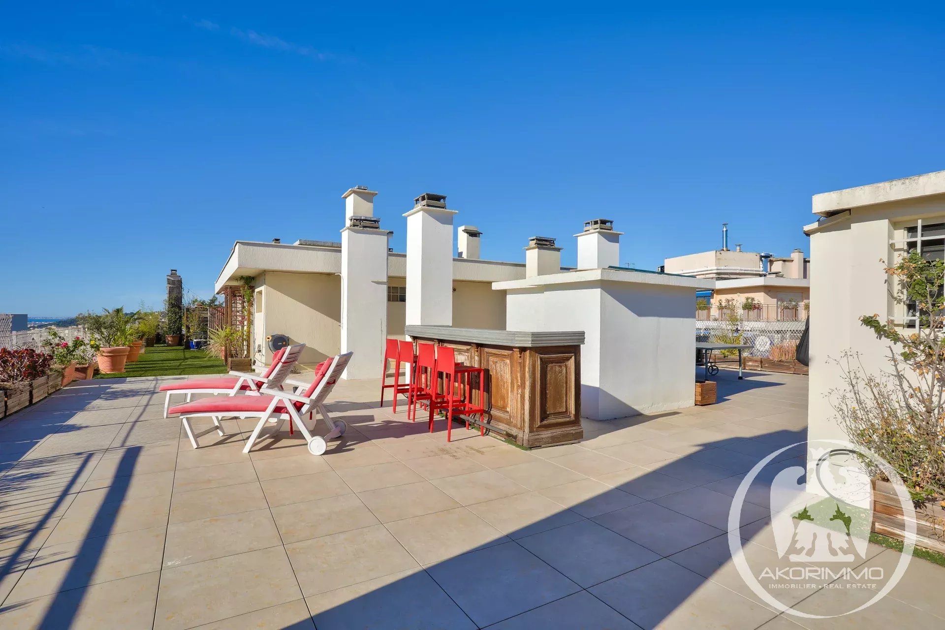 Nice Cimiez - Surrounded by 317 m² of terraces, this magnificent 3/4-room apartment with 110 m² of living space on the top floor can be enjoyed as a house.