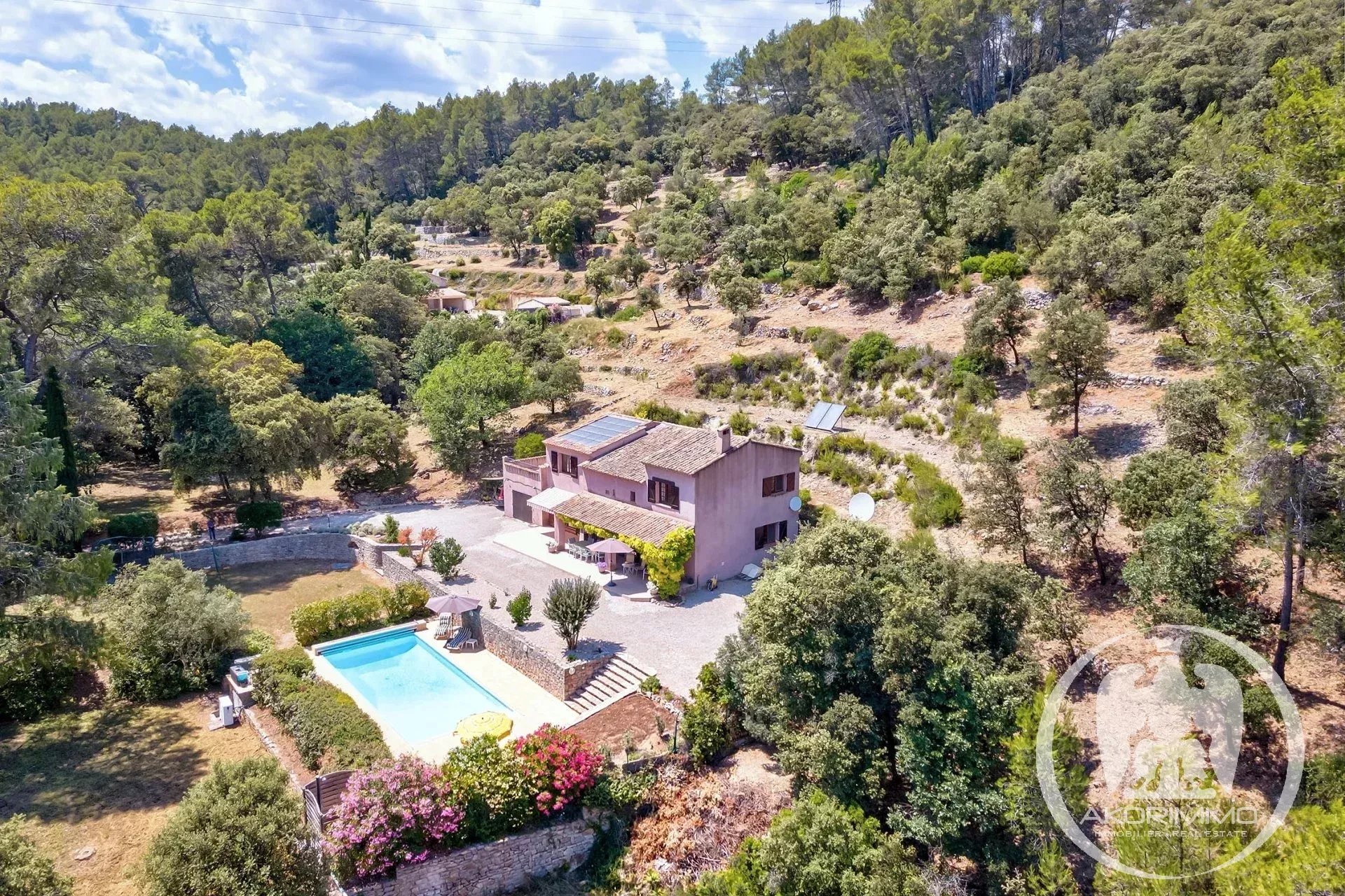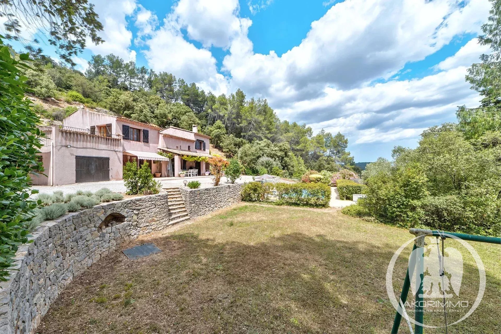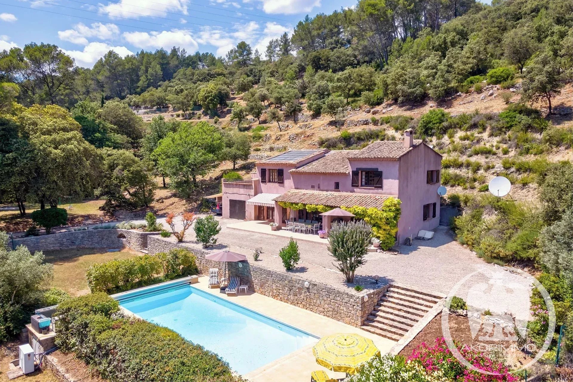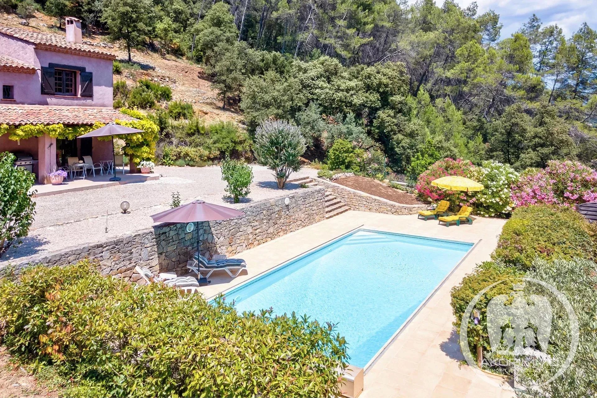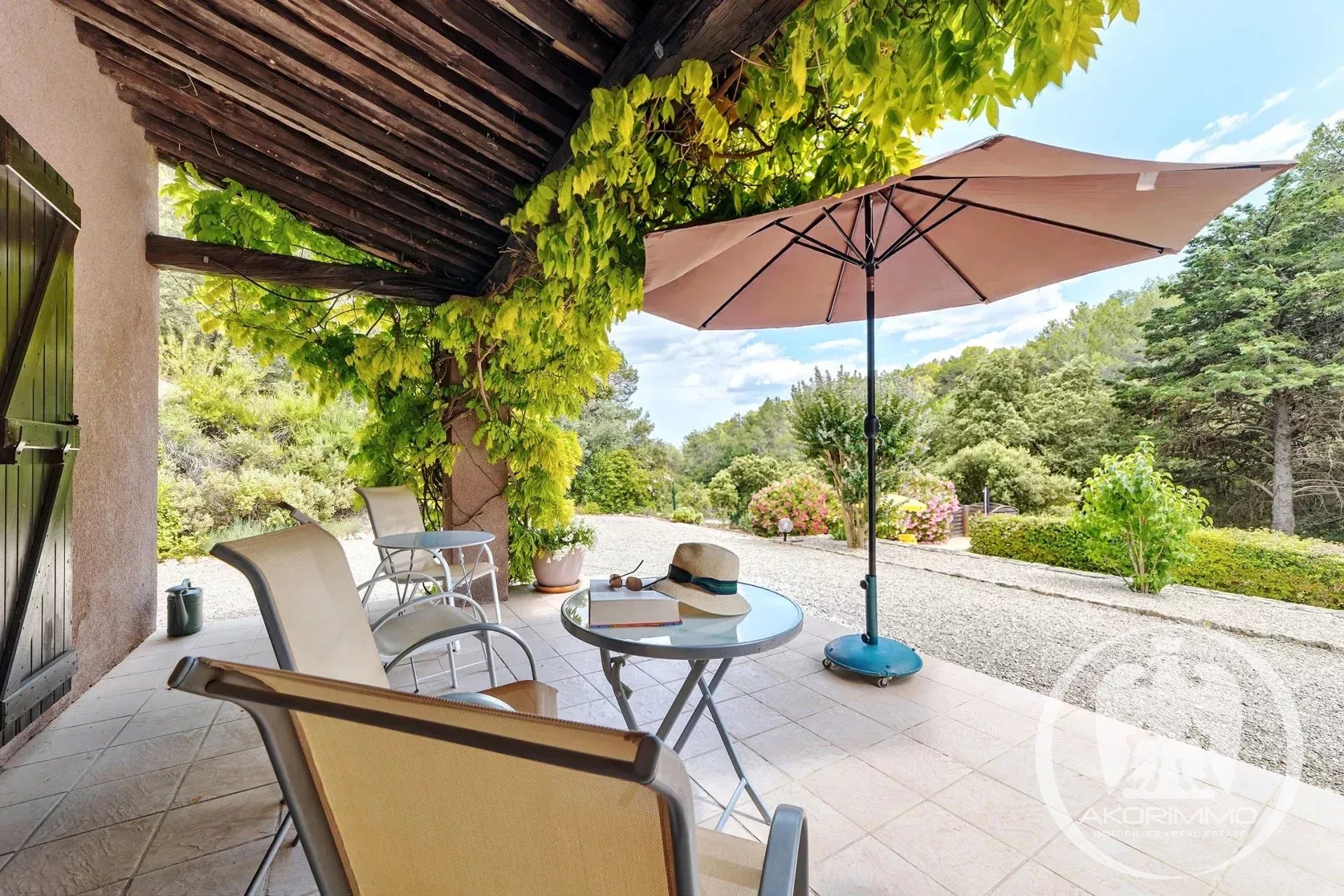 La villa cuenta con 184 m² habitables, incluyendo un cálido salón/comedor con chimenea, una cocina bien equipada y una terraza cubierta con vistas a la piscina y al jardín paisajístico.