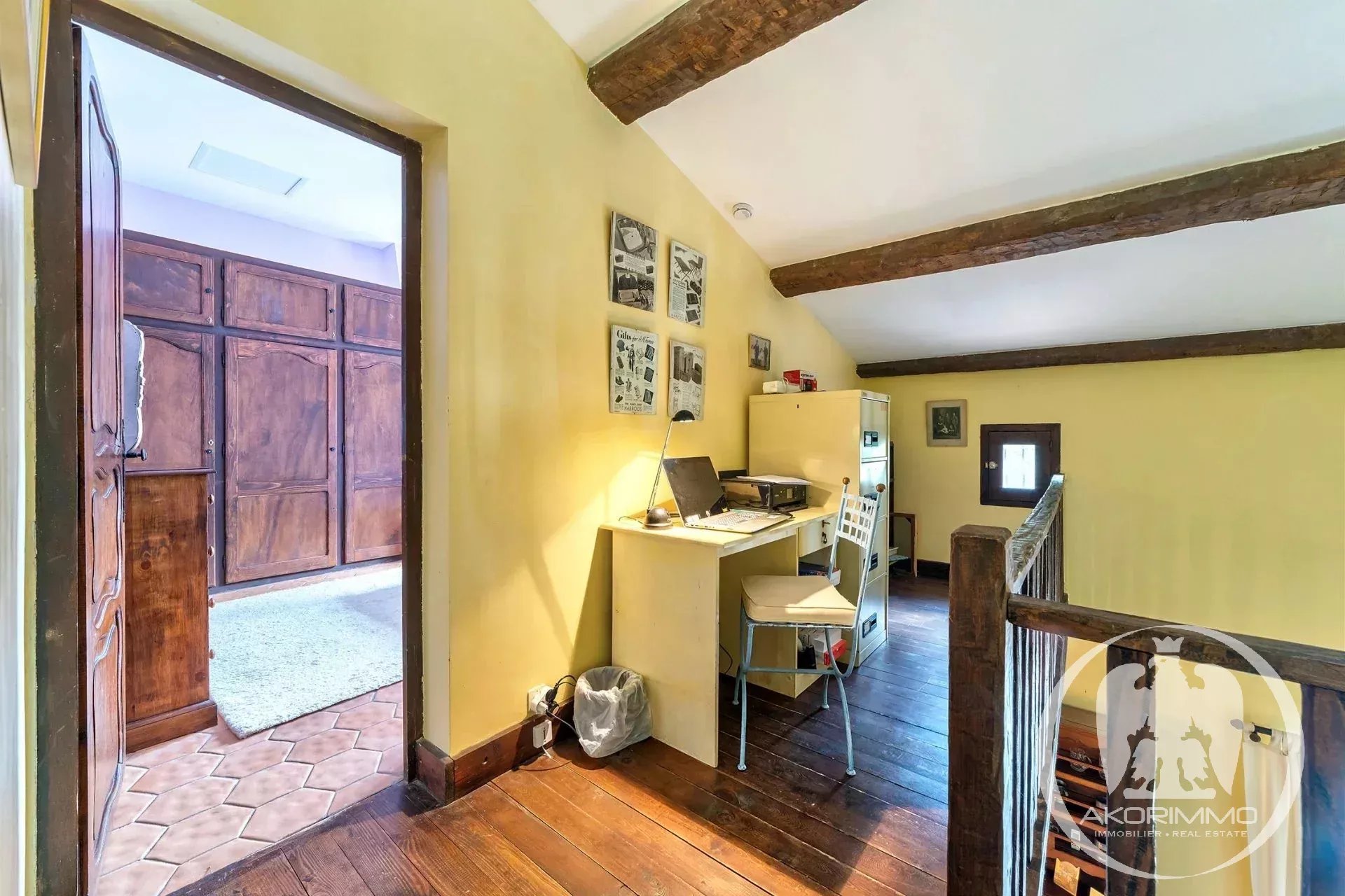 En la planta superior se encuentra un altillo que sirve de despacho, junto a un dormitorio principal con vestidor y baño, un inodoro separado y dos habitaciones adicionales que comparten un baño con ducha y un aseo separado. ¡Disfrute de bonitas vistas a las colinas desde el solárium!