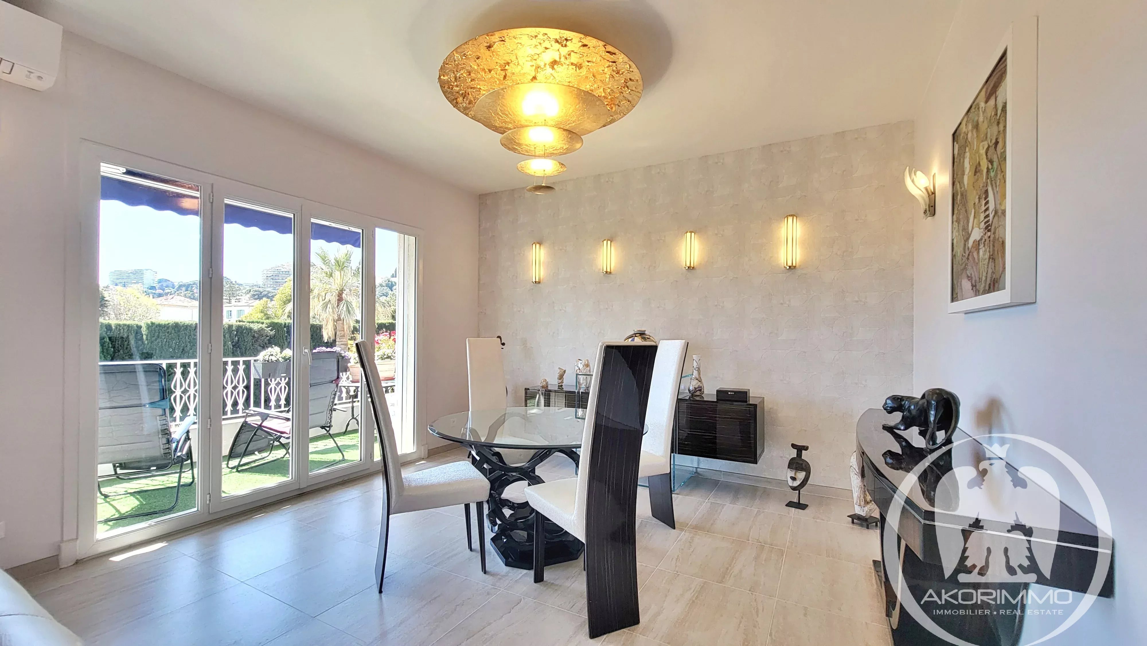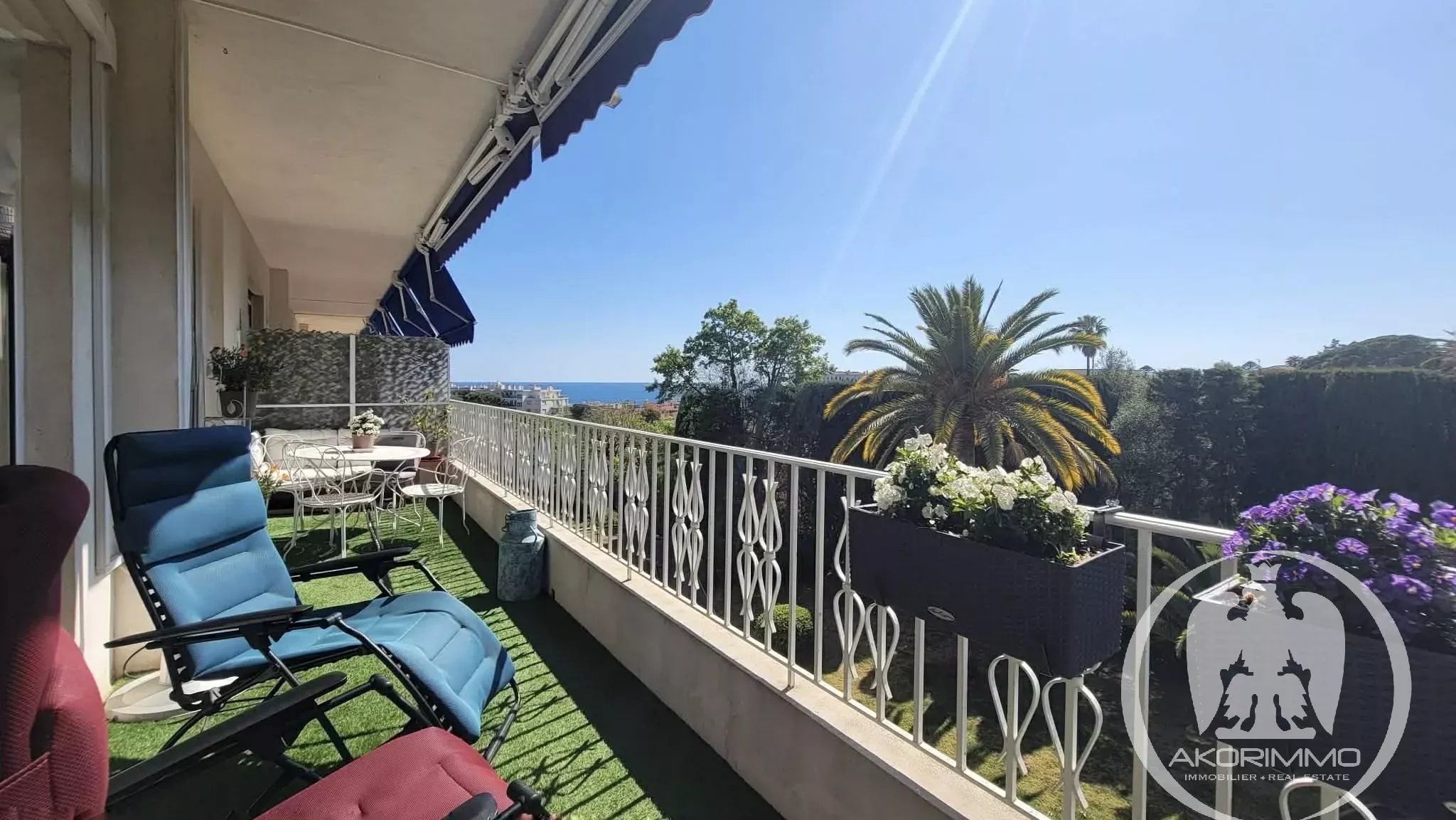 Magnífico apartamento de 3/4 habitaciones de 108 m², exterior y en excelente estado, situado en una residencia de alto standing con parque arbolado, a solo 10 minutos a pie del mar, de la Promenade des Anglais y del tranvía, con una magnífica vista al jardín de la copropiedad así como al mar.