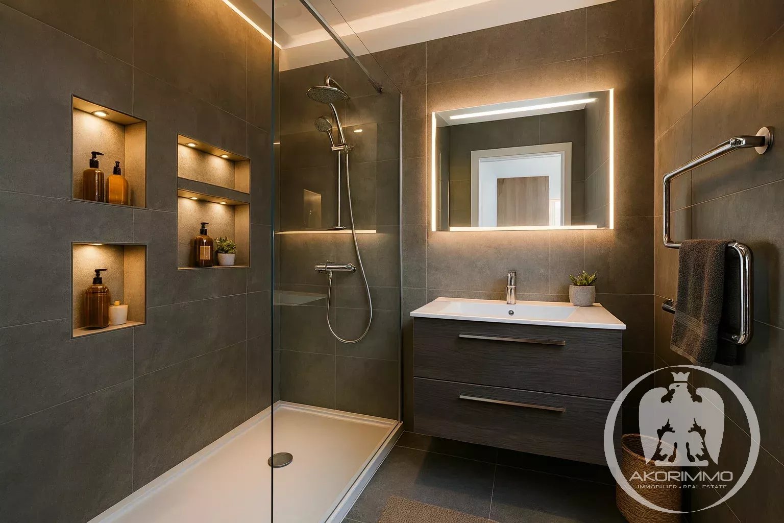 La propriété comprend une cave de 4 m² ainsi que la possibilité d’acquérir un garage box au prix de 60 000 €. La résidence bénéficie également de parkings visiteurs.