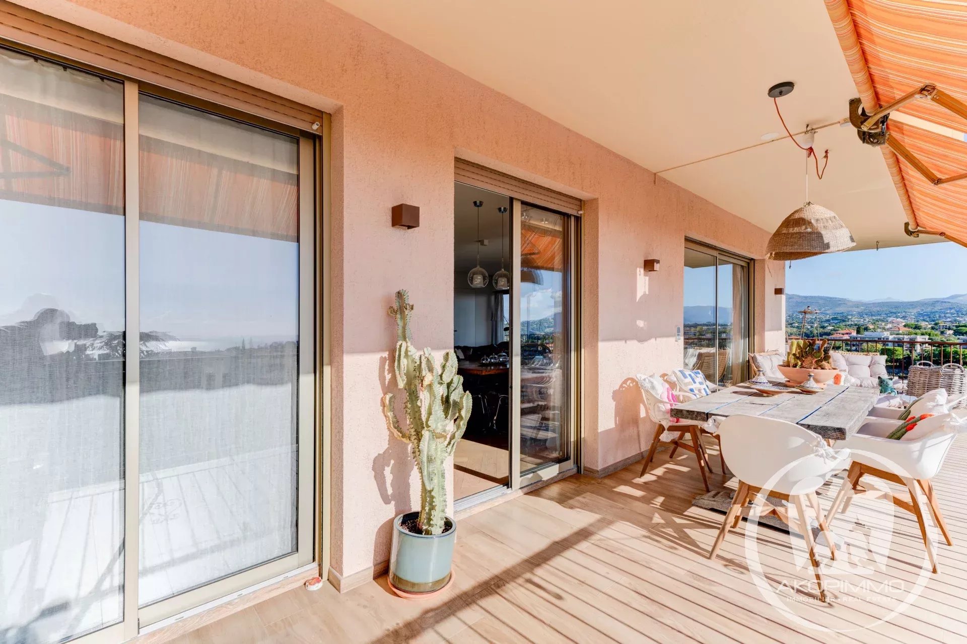 Vous pourrez bénéficier d'une belle terrasse profonde qui offre un calme olympien et une vue mer et montagne panoramique.