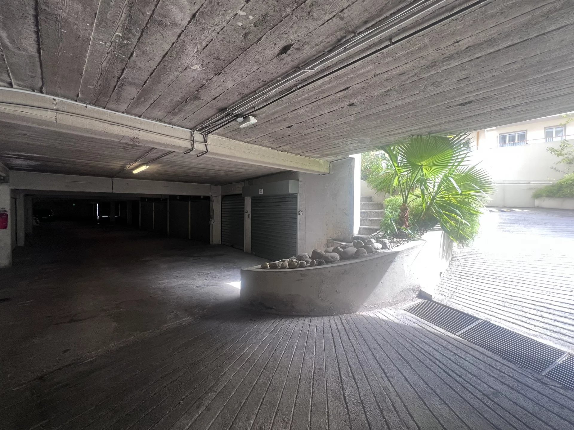 Emplacement en rez-de-chaussée, fermé par une porte coulissante.
