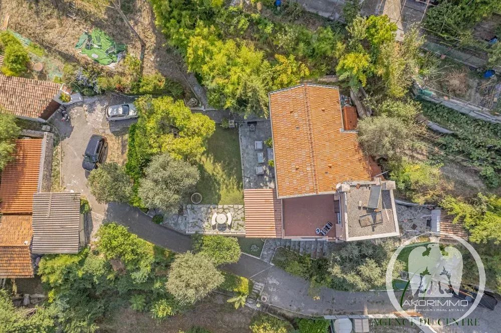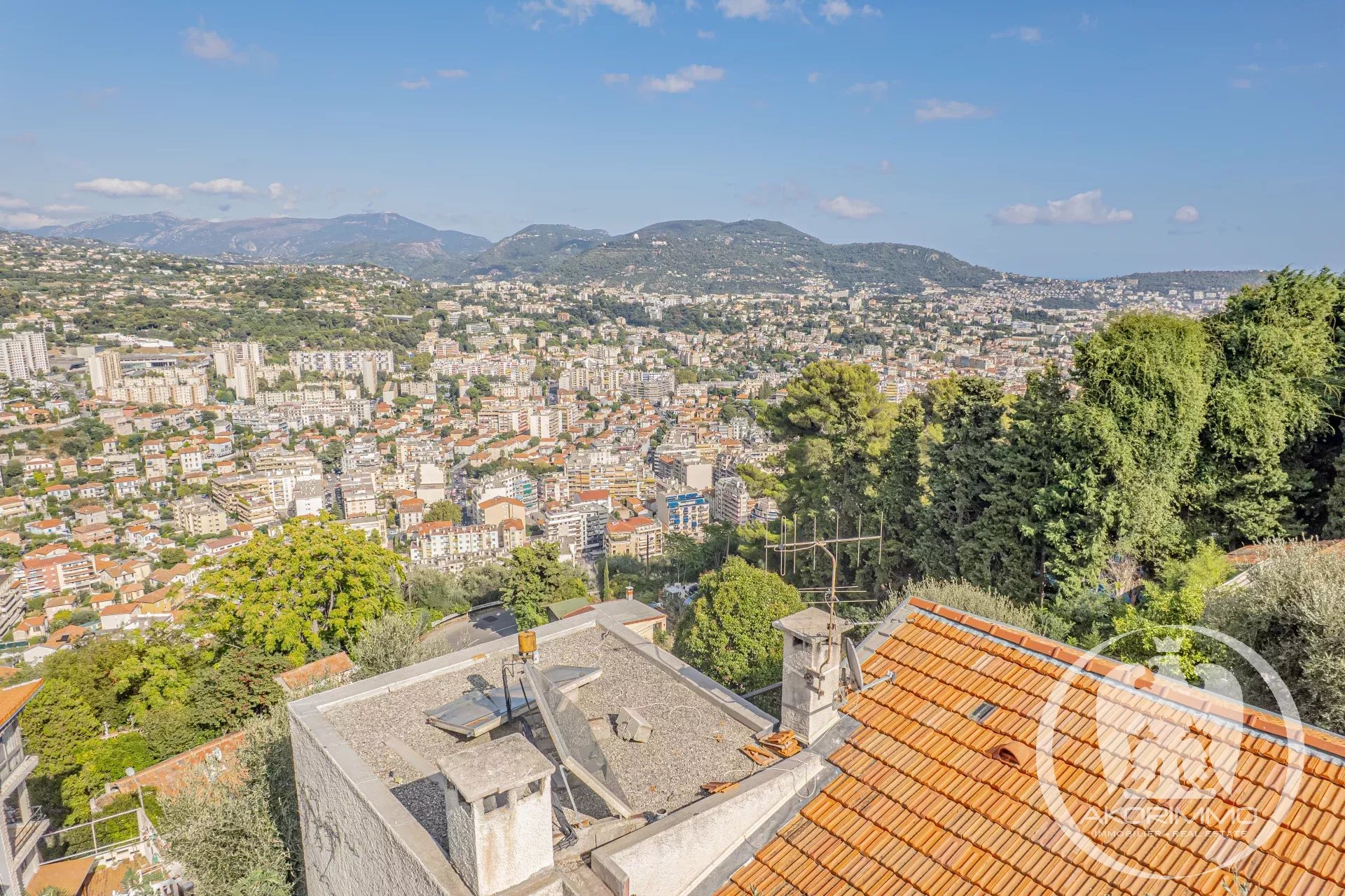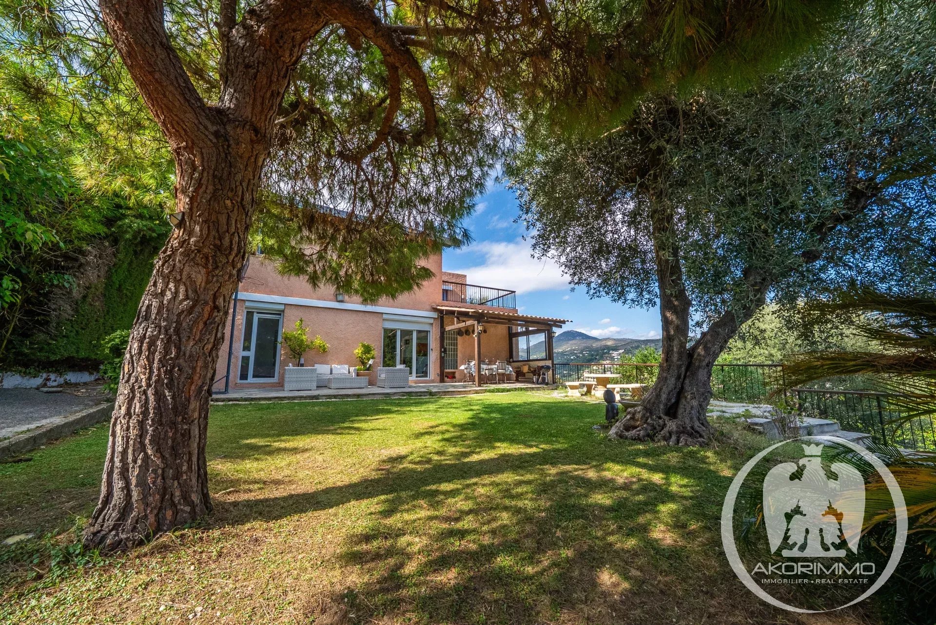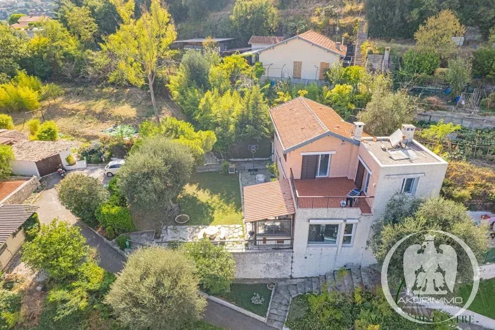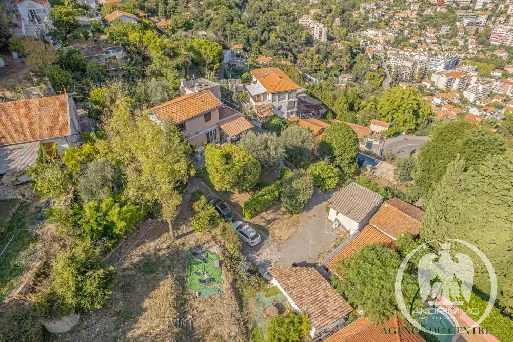Vous présente la Villa Timana, une propriété de caractère perchée en position dominante, offrant un panorama unique sur le bassin niçois et une vue mer. Située au calme absolu, la villa allie nature et proximité immédiate des commodités ainsi que de la ville. Édifiée sur une parcelle d'environ 2 300 m2, elle bénéficie d'un terrain piscinable et arboré. Elle s'ouvre sur une vaste entrée qui dessert un lumineux séjour double, une cuisine indépendante aménagée avec sa buanderie attenante, une chambre avec salle d'eau privative ainsi qu'un toilette invité. L'étage se compose de trois chambres, d'une salle de bain, d'une salle d'eau et d'un toilette indépendant. Deux chambres s'ouvrent sur une terrasse de 24 m2 exposée plein sud, avec une vue dégagée jusqu'à la mer. Le terrain, exposé sud-est et bénéficiant d'un calme absolu, se compose de deux parcelles cadastrées distinctes : o Une première parcelle constructible de 870 m2, en position dominante et orientée plein sud, offrant une vue mer. o Une seconde parcelle de 1 480 m2, également constructible, sur laquelle est édifiée la villa, et comprenant en contrebas une partie d'environ 700 m2, avec un potentiel de construction. Pour le stationnement, la villa dispose d'un espace sécurisé pouvant accueillir six véhicules, dont un garage fermé.