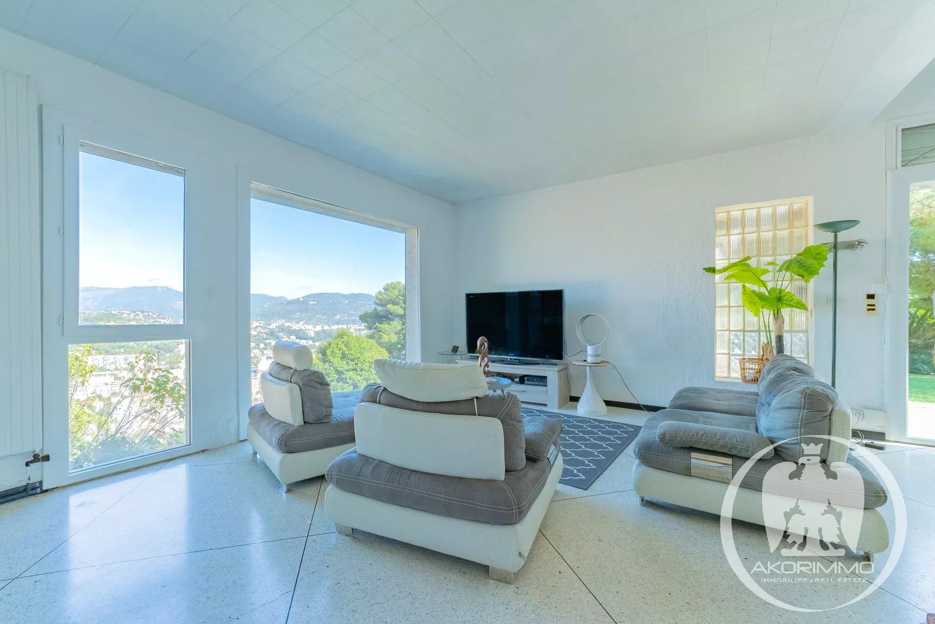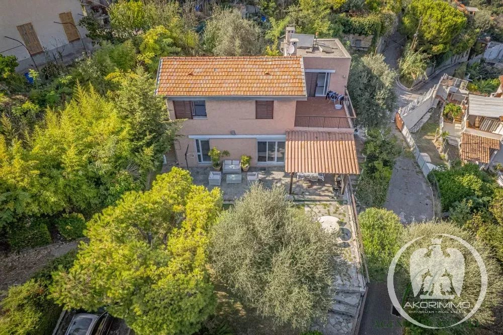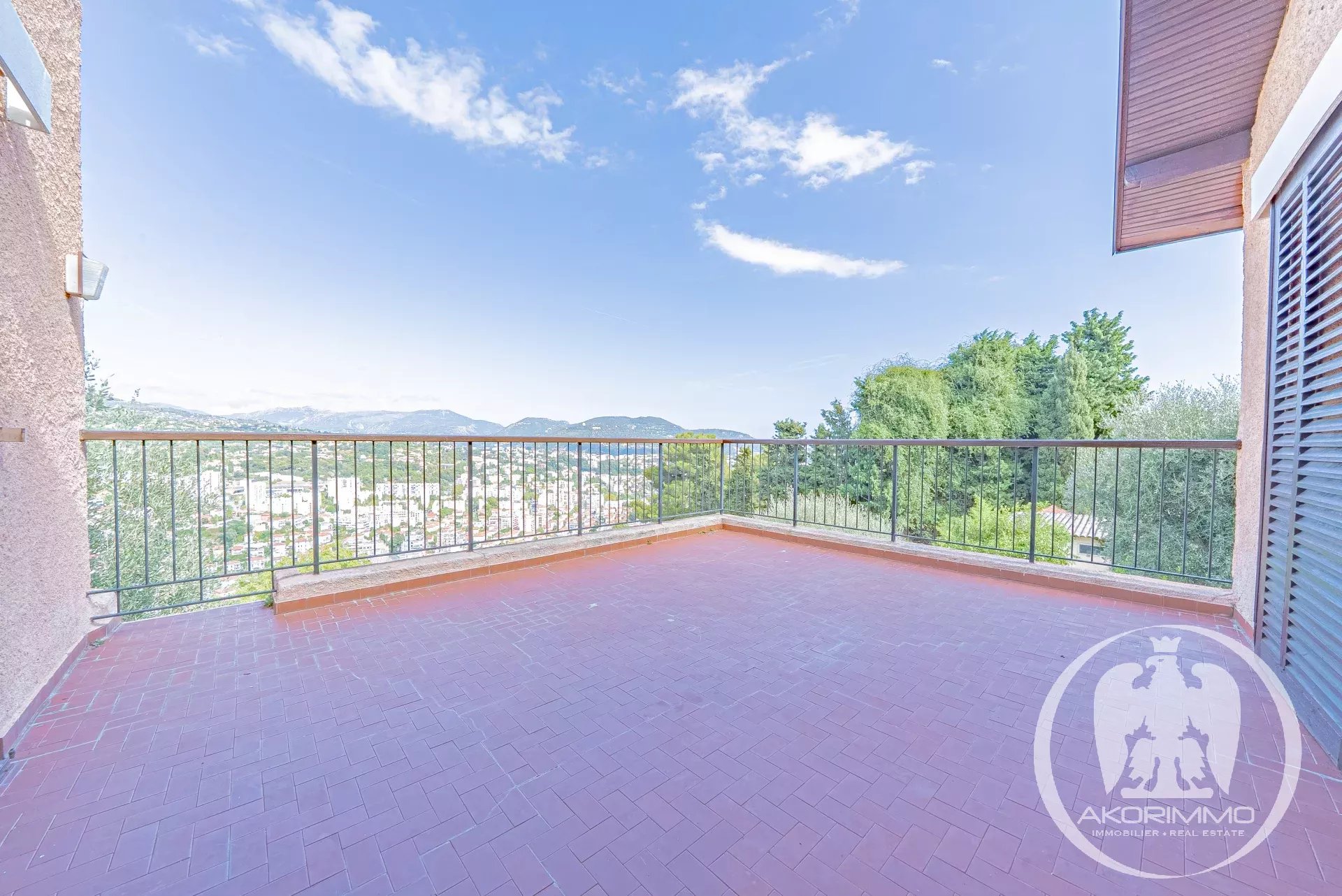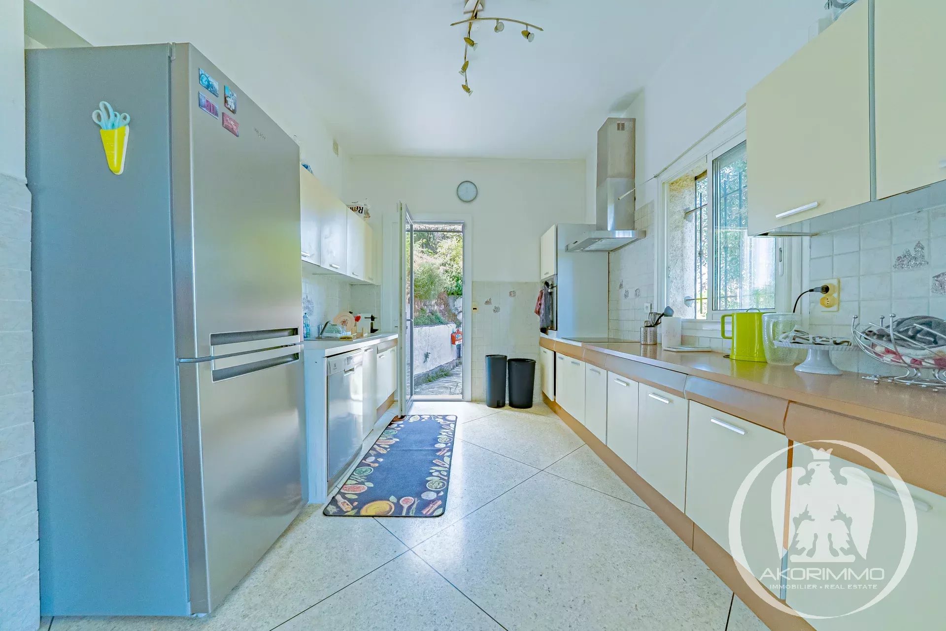 Vous présente la Villa Timana, une propriété de caractère perchée en position dominante, offrant un panorama unique sur le bassin niçois et une vue mer. Située au calme absolu, la villa allie nature et proximité immédiate des commodités ainsi que de la ville. Édifiée sur une parcelle d'environ 2 300 m2, elle bénéficie d'un terrain piscinable et arboré. Elle s'ouvre sur une vaste entrée qui dessert un lumineux séjour double, une cuisine indépendante aménagée avec sa buanderie attenante, une chambre avec salle d'eau privative ainsi qu'un toilette invité. L'étage se compose de trois chambres, d'une salle de bain, d'une salle d'eau et d'un toilette indépendant. Deux chambres s'ouvrent sur une terrasse de 24 m2 exposée plein sud, avec une vue dégagée jusqu'à la mer. Le terrain, exposé sud-est et bénéficiant d'un calme absolu, se compose de deux parcelles cadastrées distinctes : o Une première parcelle constructible de 870 m2, en position dominante et orientée plein sud, offrant une vue mer. o Une seconde parcelle de 1 480 m2, également constructible, sur laquelle est édifiée la villa, et comprenant en contrebas une partie d'environ 700 m2, avec un potentiel de construction. Pour le stationnement, la villa dispose d'un espace sécurisé pouvant accueillir six véhicules, dont un garage fermé.