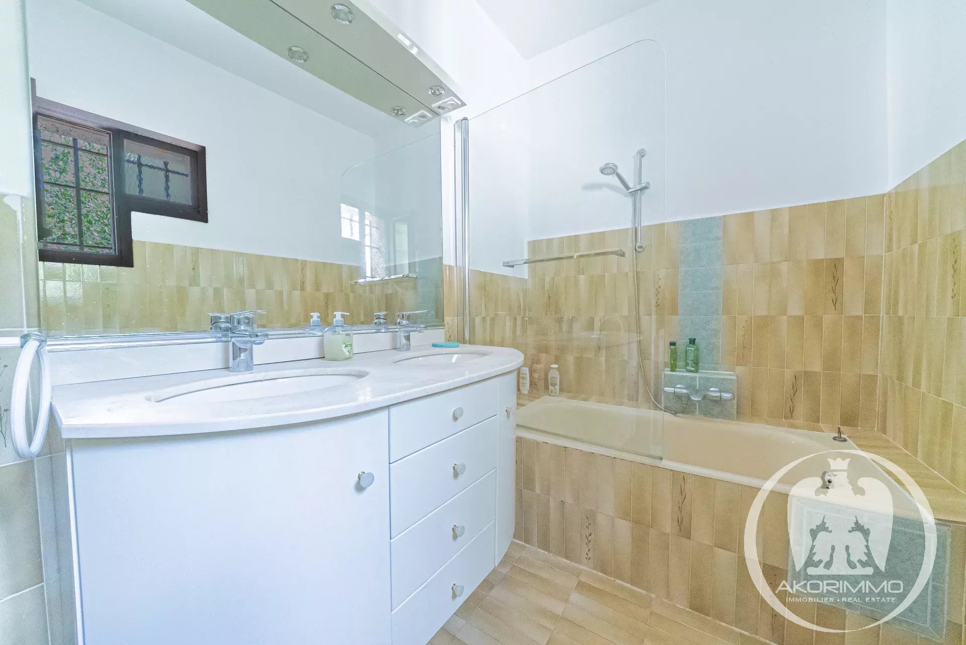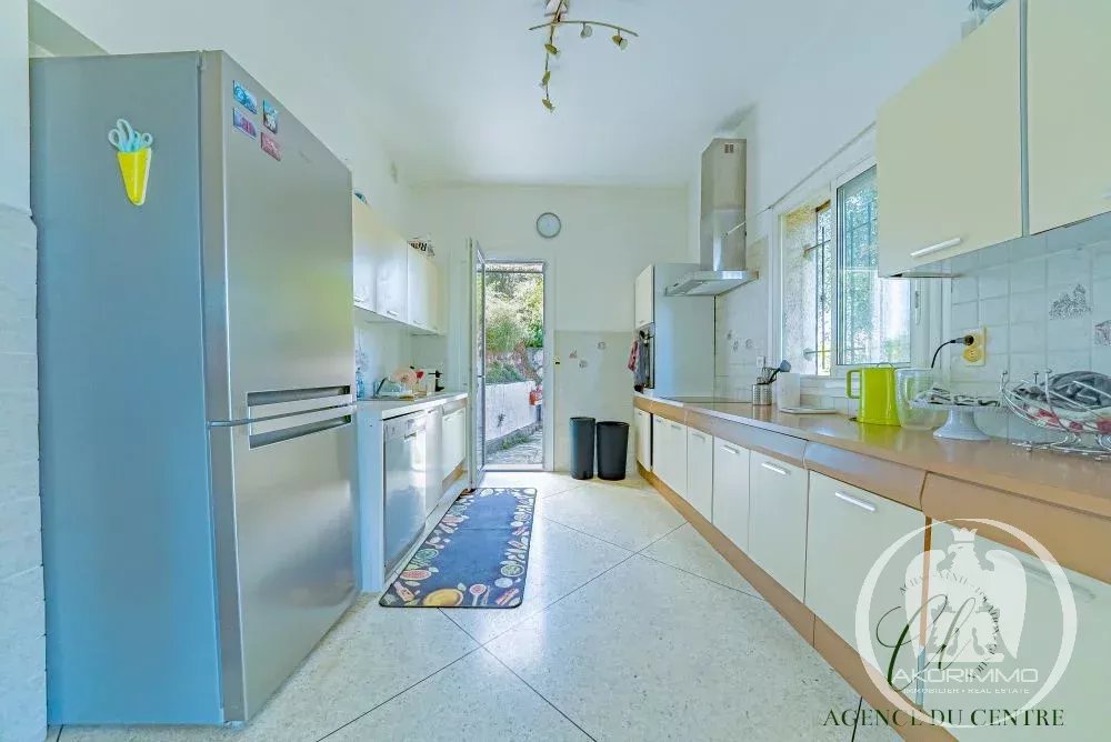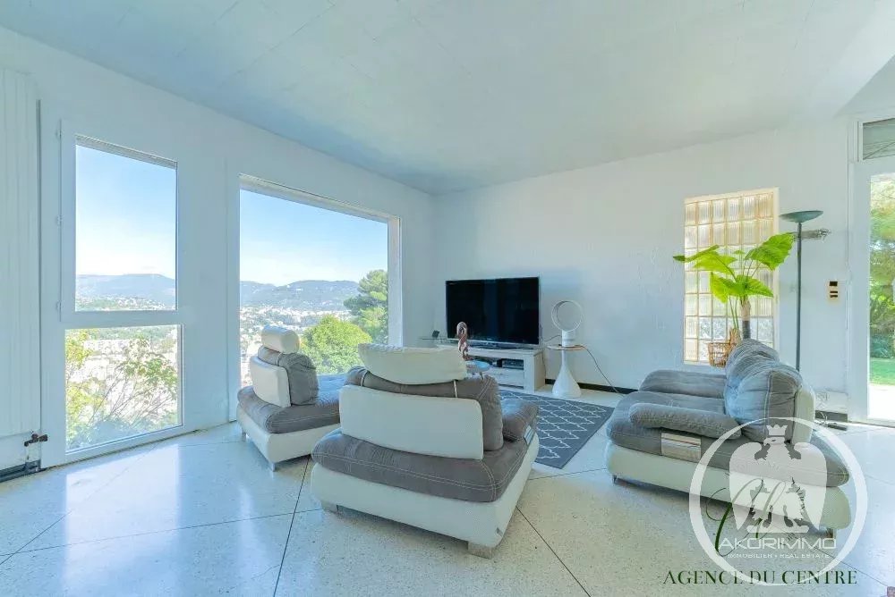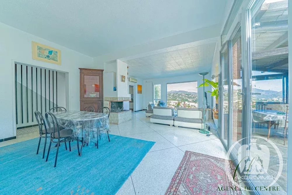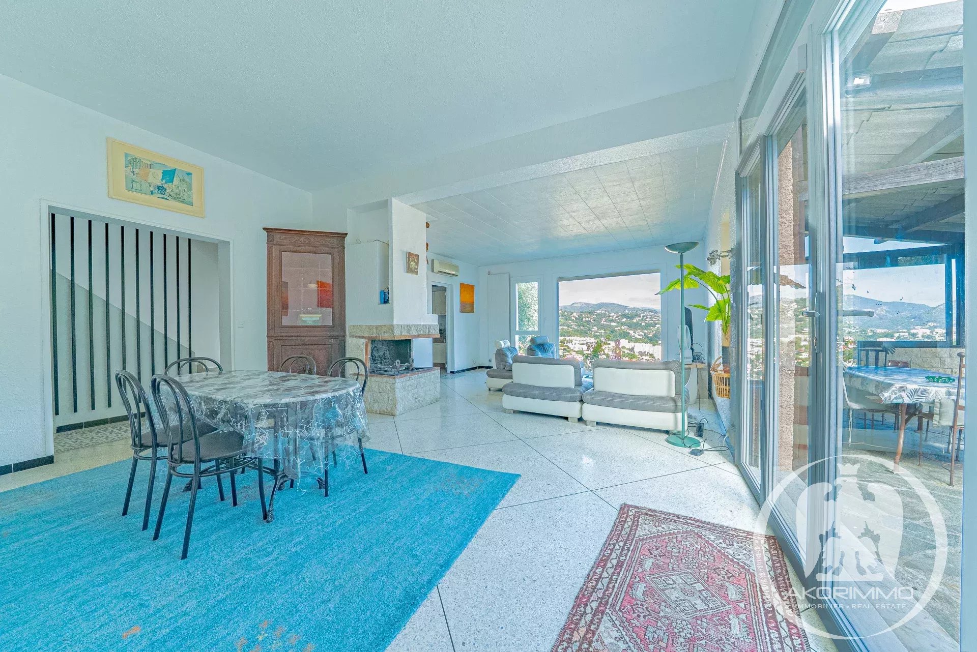 Vous présente la Villa Timana, une propriété de caractère perchée en position dominante, offrant un panorama unique sur le bassin niçois et une vue mer. Située au calme absolu, la villa allie nature et proximité immédiate des commodités ainsi que de la ville. Édifiée sur une parcelle d'environ 2 300 m2, elle bénéficie d'un terrain piscinable et arboré. Elle s'ouvre sur une vaste entrée qui dessert un lumineux séjour double, une cuisine indépendante aménagée avec sa buanderie attenante, une chambre avec salle d'eau privative ainsi qu'un toilette invité. L'étage se compose de trois chambres, d'une salle de bain, d'une salle d'eau et d'un toilette indépendant. Deux chambres s'ouvrent sur une terrasse de 24 m2 exposée plein sud, avec une vue dégagée jusqu'à la mer. Le terrain, exposé sud-est et bénéficiant d'un calme absolu, se compose de deux parcelles cadastrées distinctes : o Une première parcelle constructible de 870 m2, en position dominante et orientée plein sud, offrant une vue mer. o Une seconde parcelle de 1 480 m2, également constructible, sur laquelle est édifiée la villa, et comprenant en contrebas une partie d'environ 700 m2, avec un potentiel de construction. Pour le stationnement, la villa dispose d'un espace sécurisé pouvant accueillir six véhicules, dont un garage fermé.