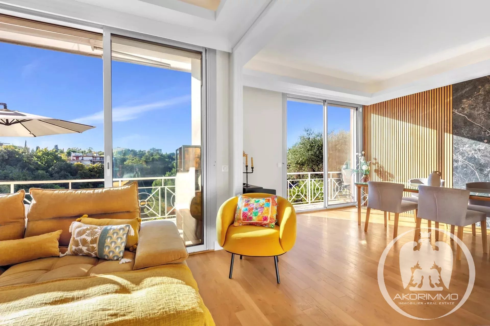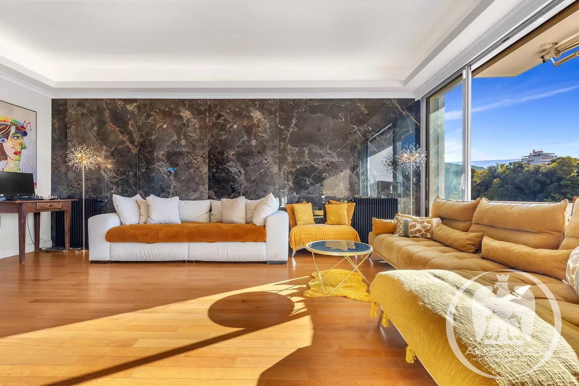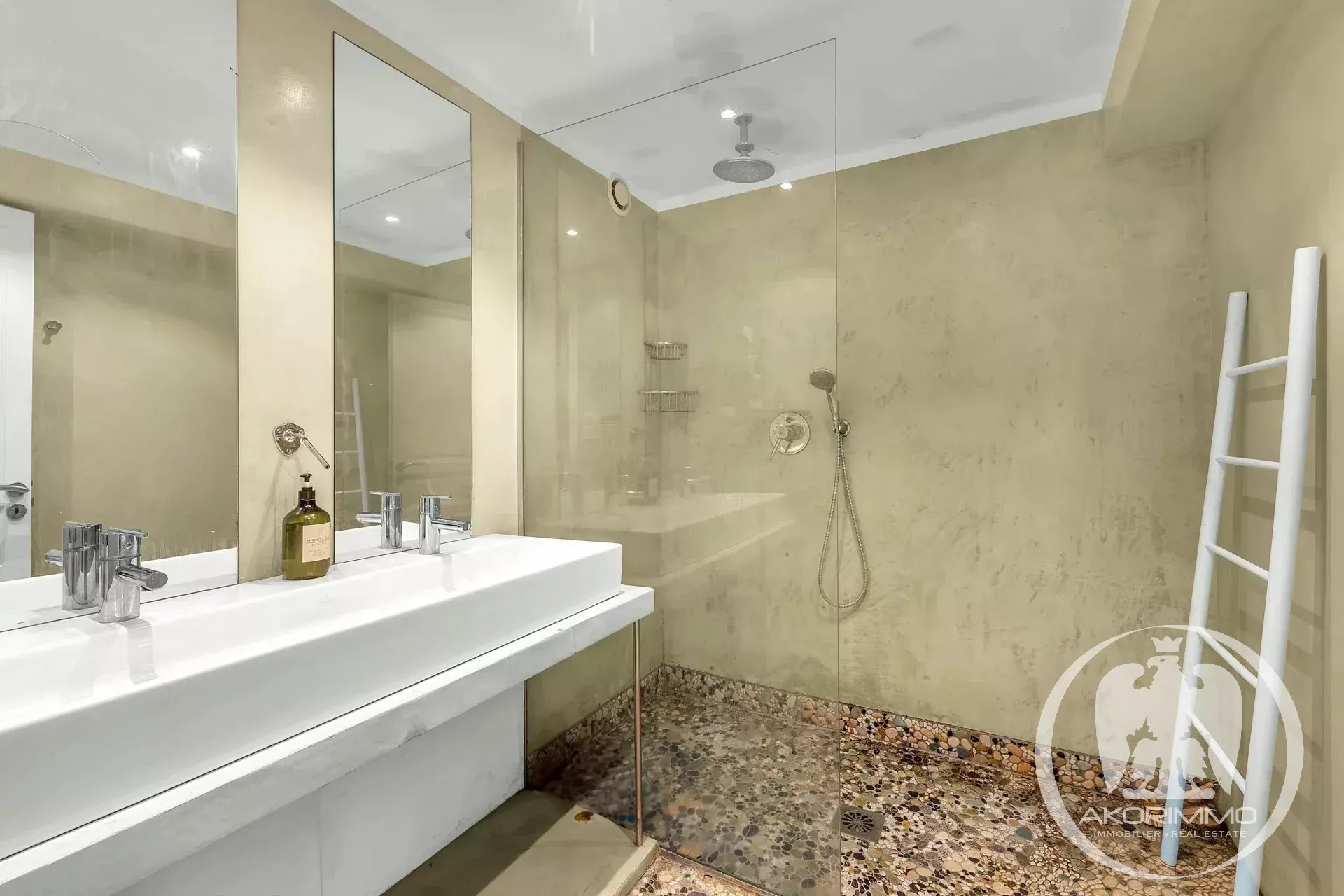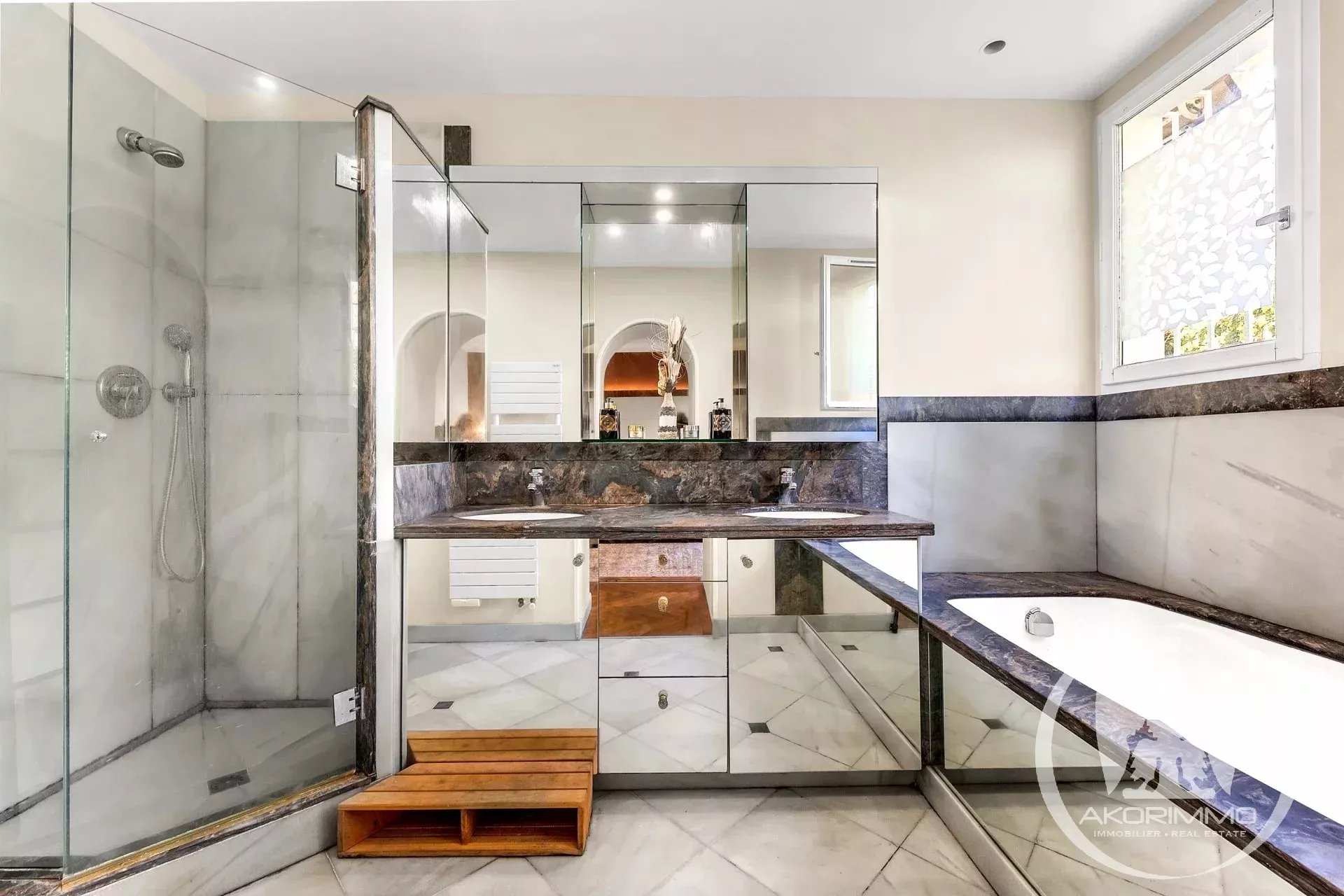 au 1er étage : une entrée, un grand séjour et une salle à manger ouvrant sur une agréable terrasse prolongée d'un balcon avec vue panoramique, une cuisine semi-ouverte, 2 belles chambres dont une en suite avec sa salle de bain et son wc, grands placards, un cabinet de toilette, cellier.