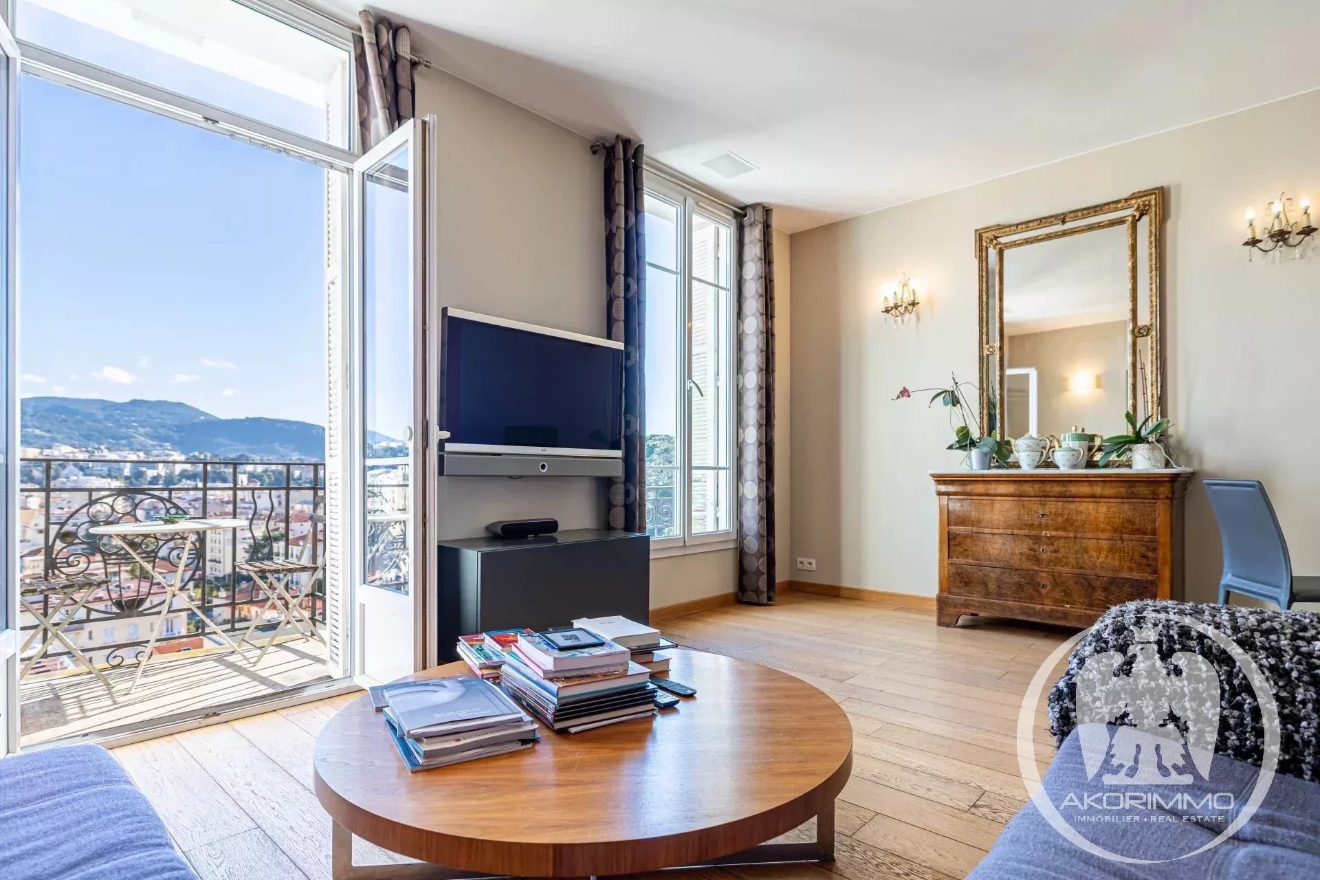 Superbe appartement 6 pièces de 165m² habitables (129m² carrez) traversant, de type triplex, avec vue panoramique allant des montagnes jusqu'à la mer, en passant par les toits de Nice.