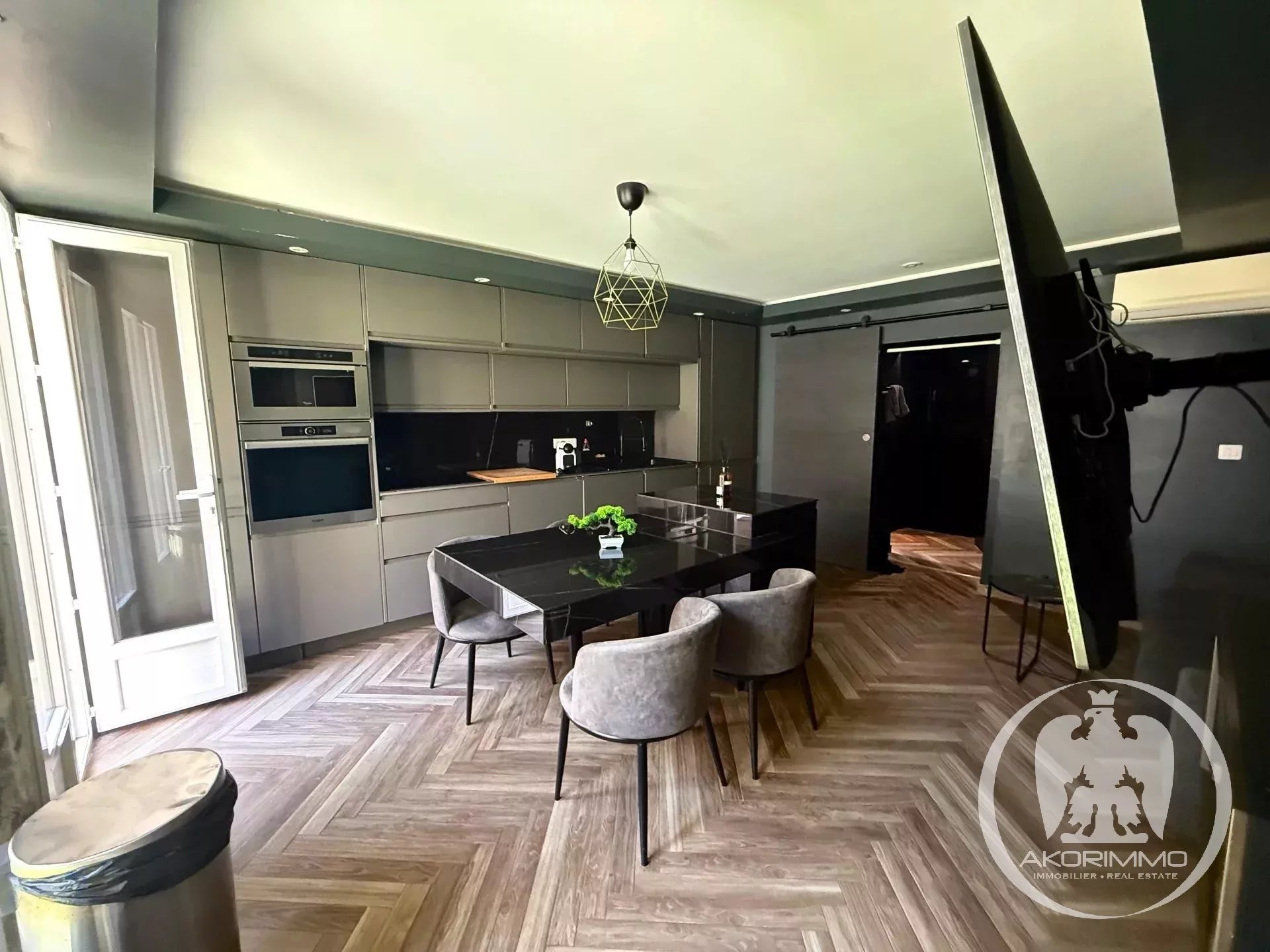 Goditi una cucina moderna a vista, completamente attrezzata e arredata con gusto, che si apre su un ampio e luminoso soggiorno. Troverai anche un bagno raffinato con doccia all’italiana e WC, tutto in uno stile decisamente contemporaneo.