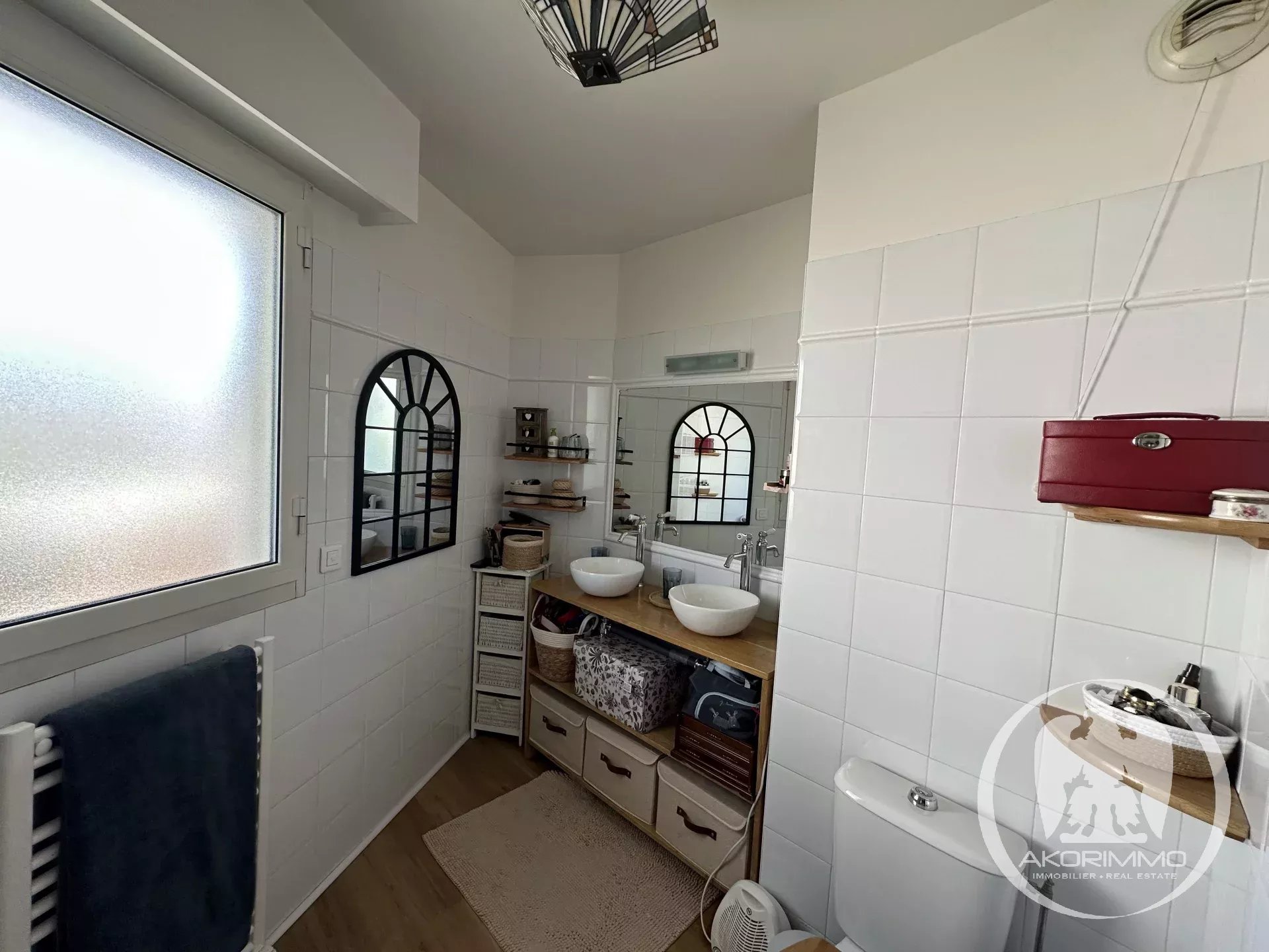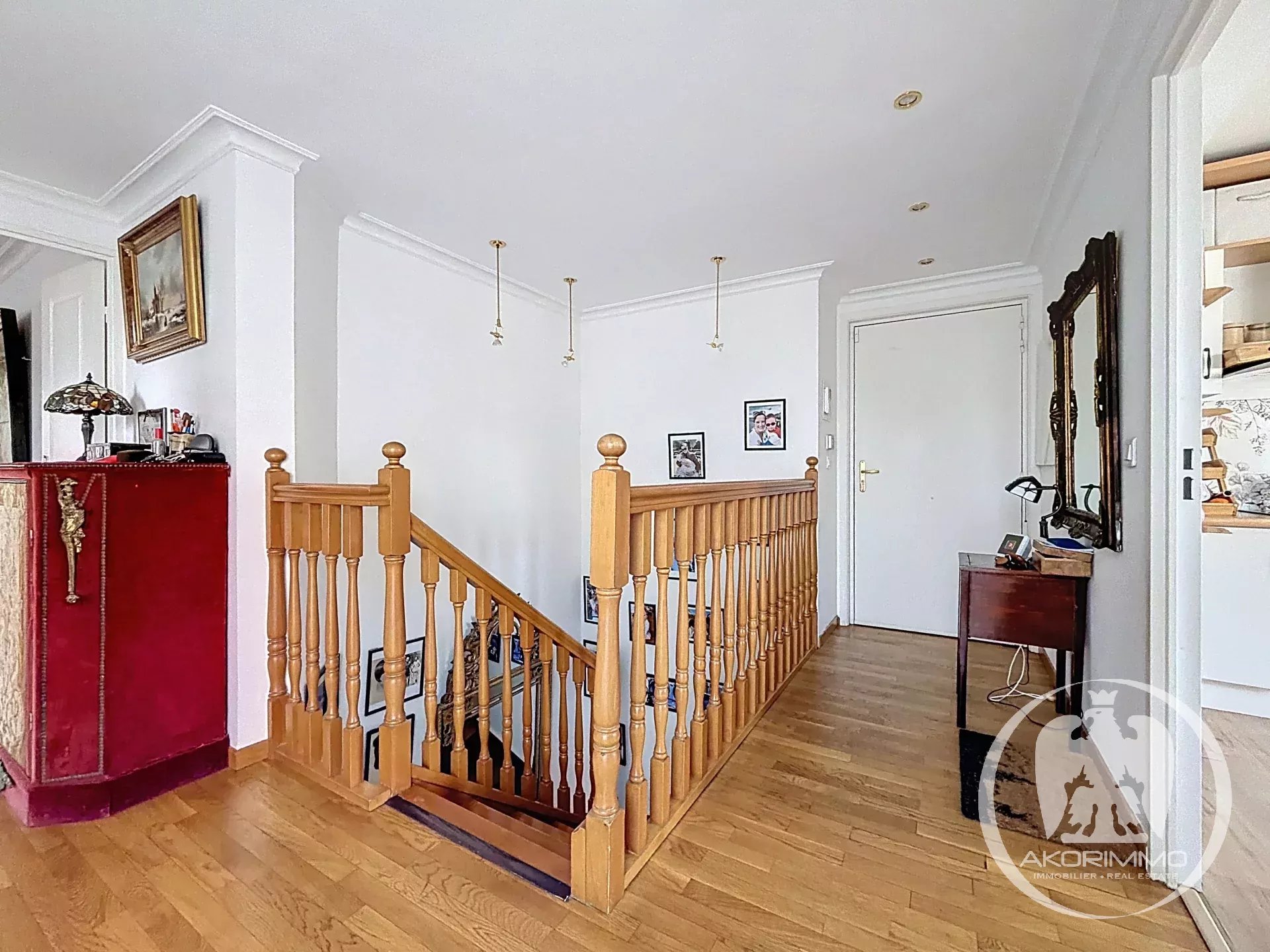 Una bella scala in legno conduce al piano inferiore che comprende 3 camere da letto, 1 bagno con doccia, 1 bagno, ripostigli e 1 cabina armadio nella camera da letto principale.