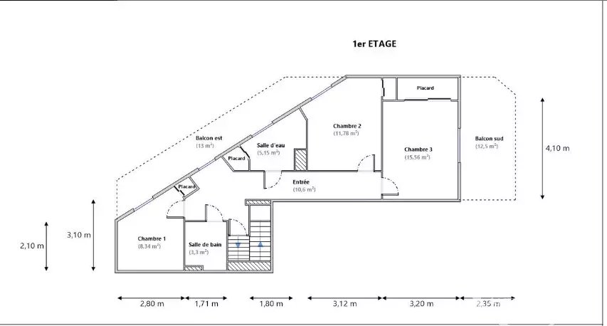 Al piano superiore, un ingresso, una cucina indipendente, un WC per gli ospiti e un ampio soggiorno di 33 m².